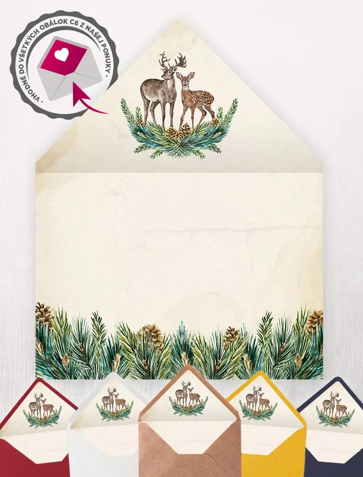 Lovecký motiv jelenů a chvojí na etiketě na víno i pálenku potěší milovníky přírody a tradice. Vhodné na výslužky i svatební stůl.