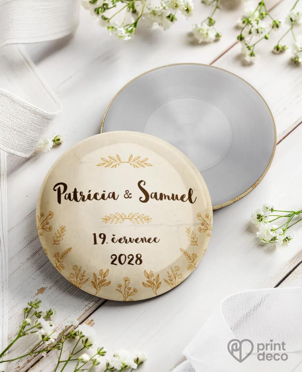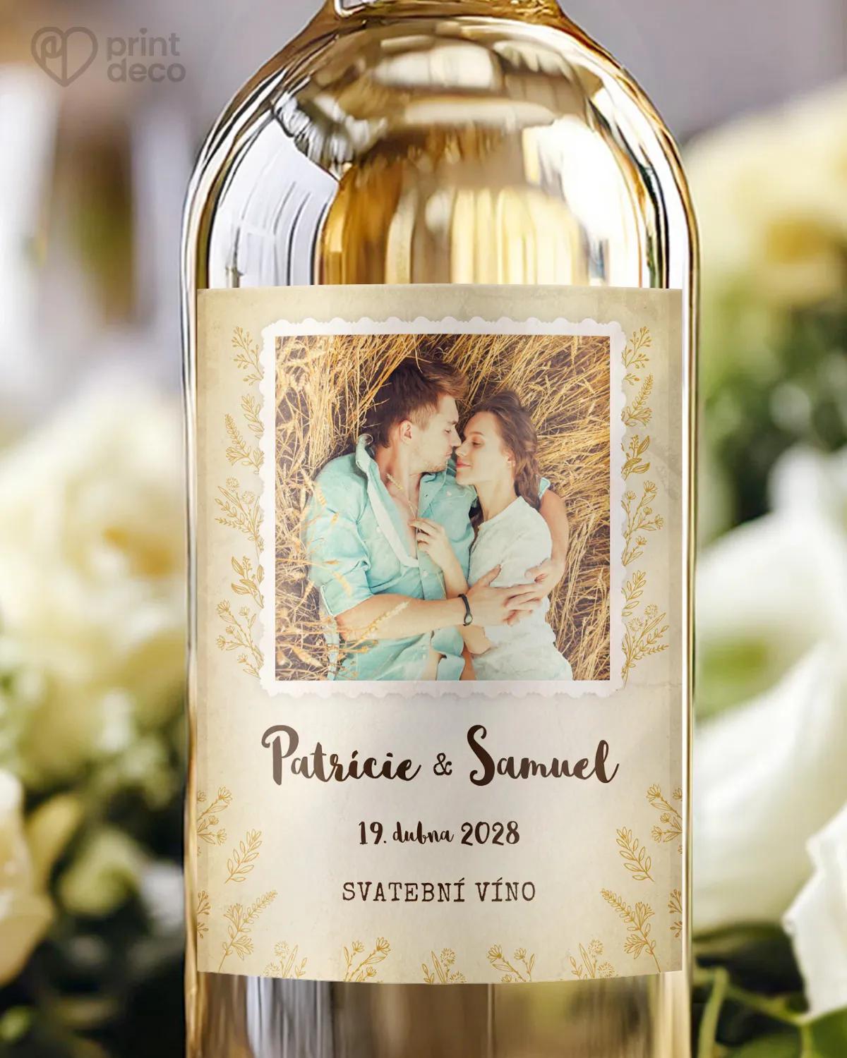 Romantická vintage etiketa na svatební víno s něžným motivem lučních květů a teplým přírodním pozadím dodá lahvím šarm venkovského stylu. Vynikne na svatebním stole i jako milá vzpomínka pro hosty. Text si upravíte jednoduše online zdarma a vaše objednávka bude vyrobena expresně. Vytvořte si dokonalou sadu pro svůj den a potěšte hosty krásným detailem.