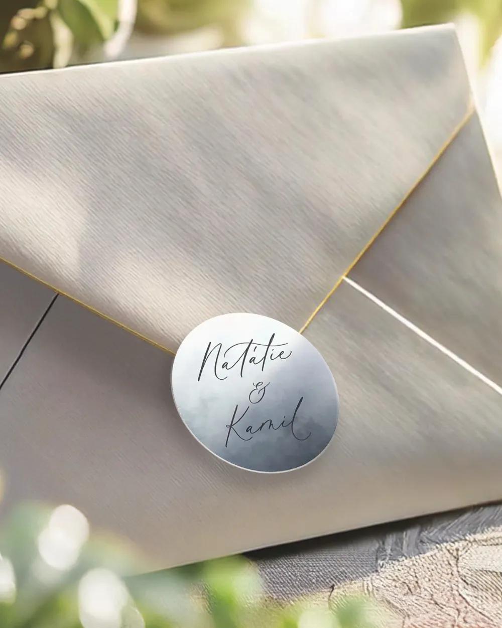 Svatební jmenovky na stůl v šedo-modrém akvarelovém stylu působí jemně a decentně, spojují svěžest modré s elegancí šedé. Tento motiv je ideální pro moderní, minimalistické i elegantní svatby, kde vynikne jeho univerzálnost. Čistý design s kaligrafickým písmem dělá z jmenovek nejen praktický orientační prvek, ale i estetický doplněk stolování. Jména hostů si snadno doplníte přes online editor zdarma nebo zašlete celý seznam ke zpracování. Design můžete bez problému kombinovat s dalšími tiskovinami ve stejném stylu – oznámeními, etiketami či samolepkami. Expresní výroba a špičkový tisk zajistí dokonalý výsledek bez čekání.
