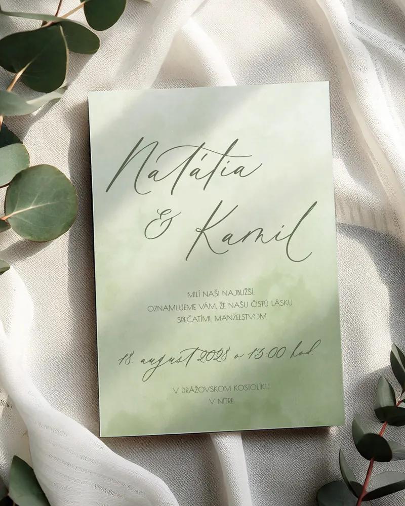 Svatební jmenovky – Akvarelová láska (zelená)