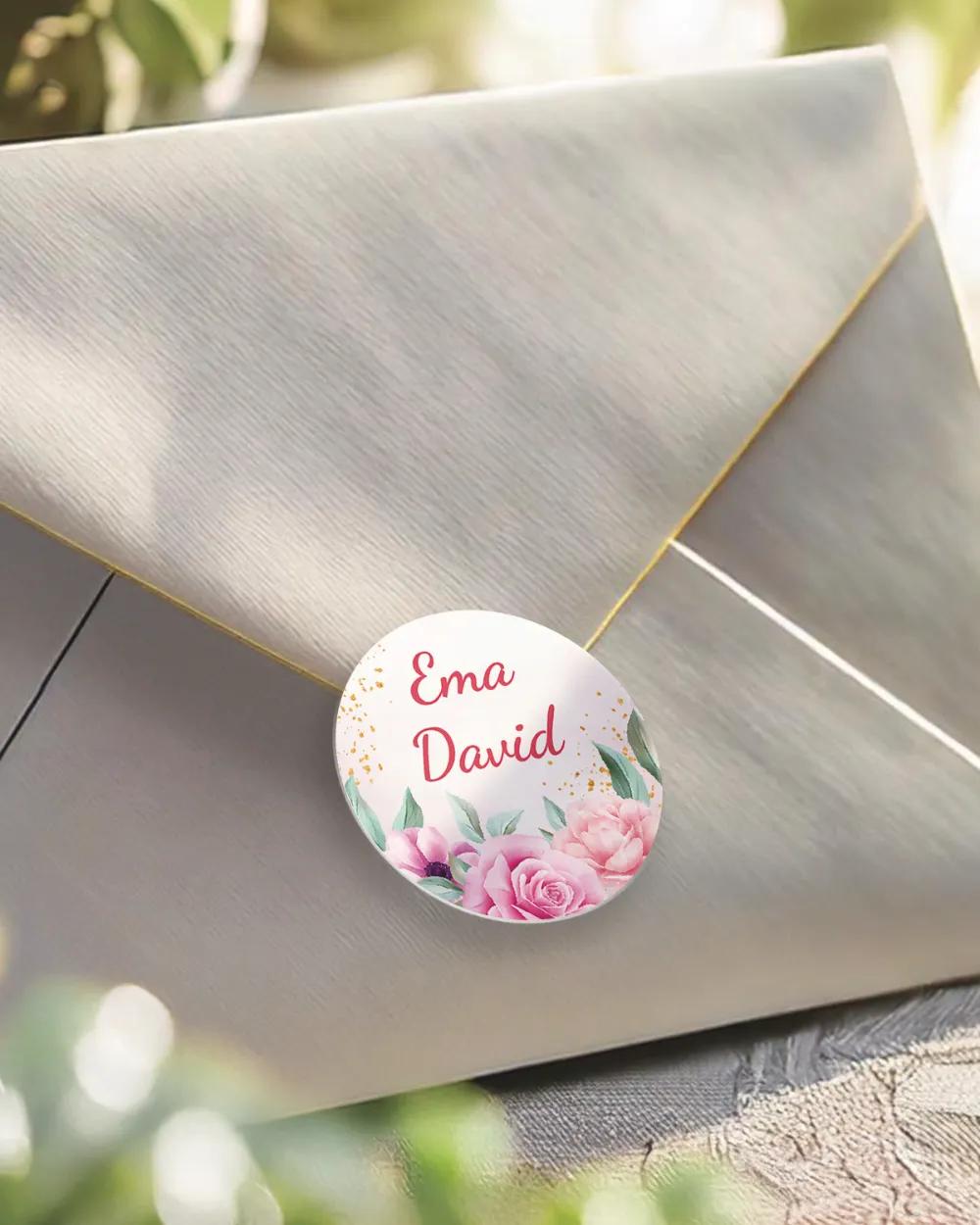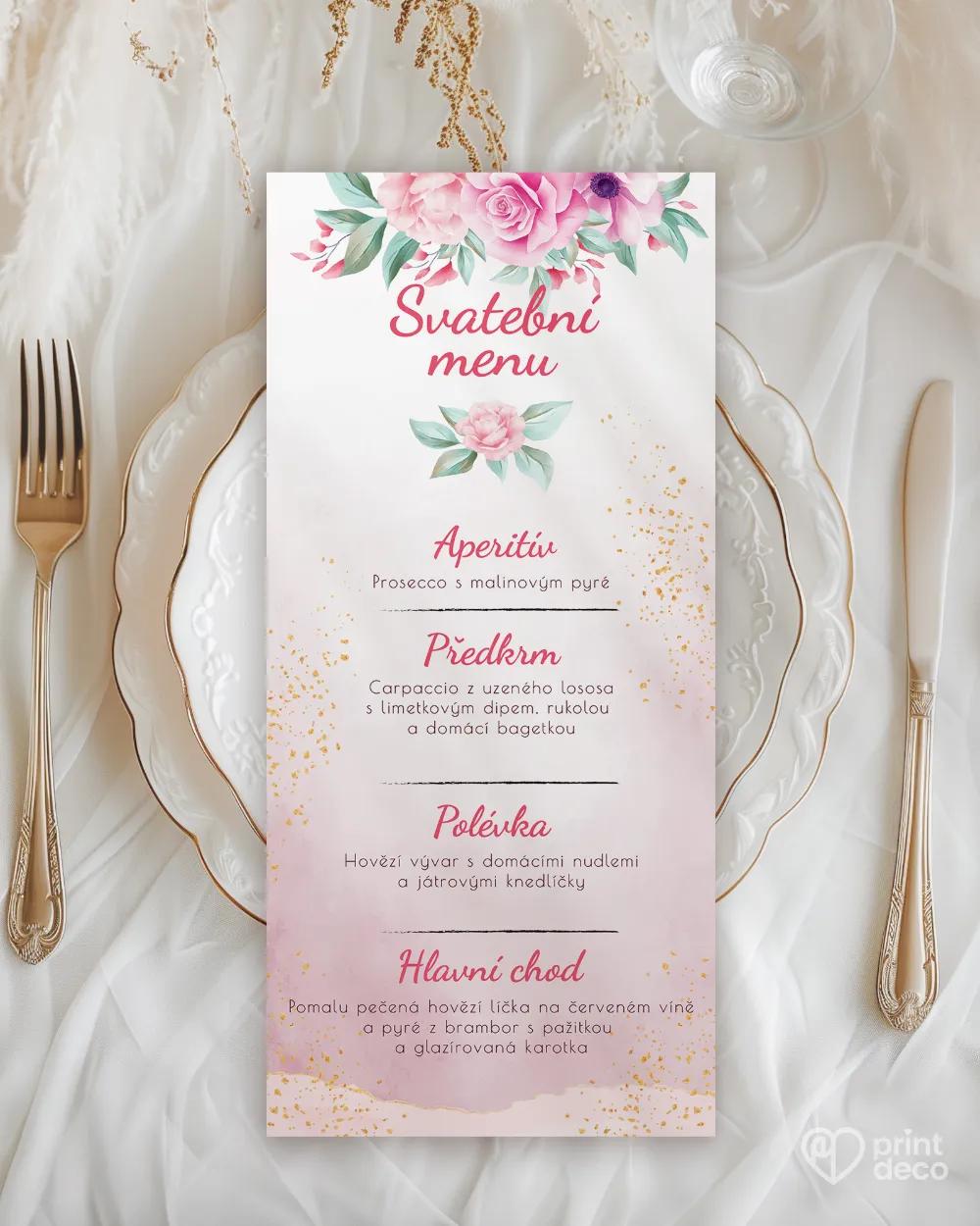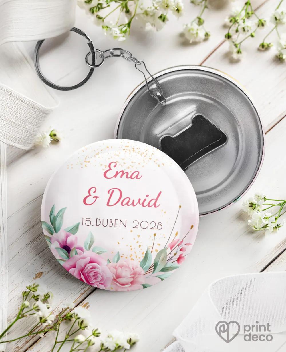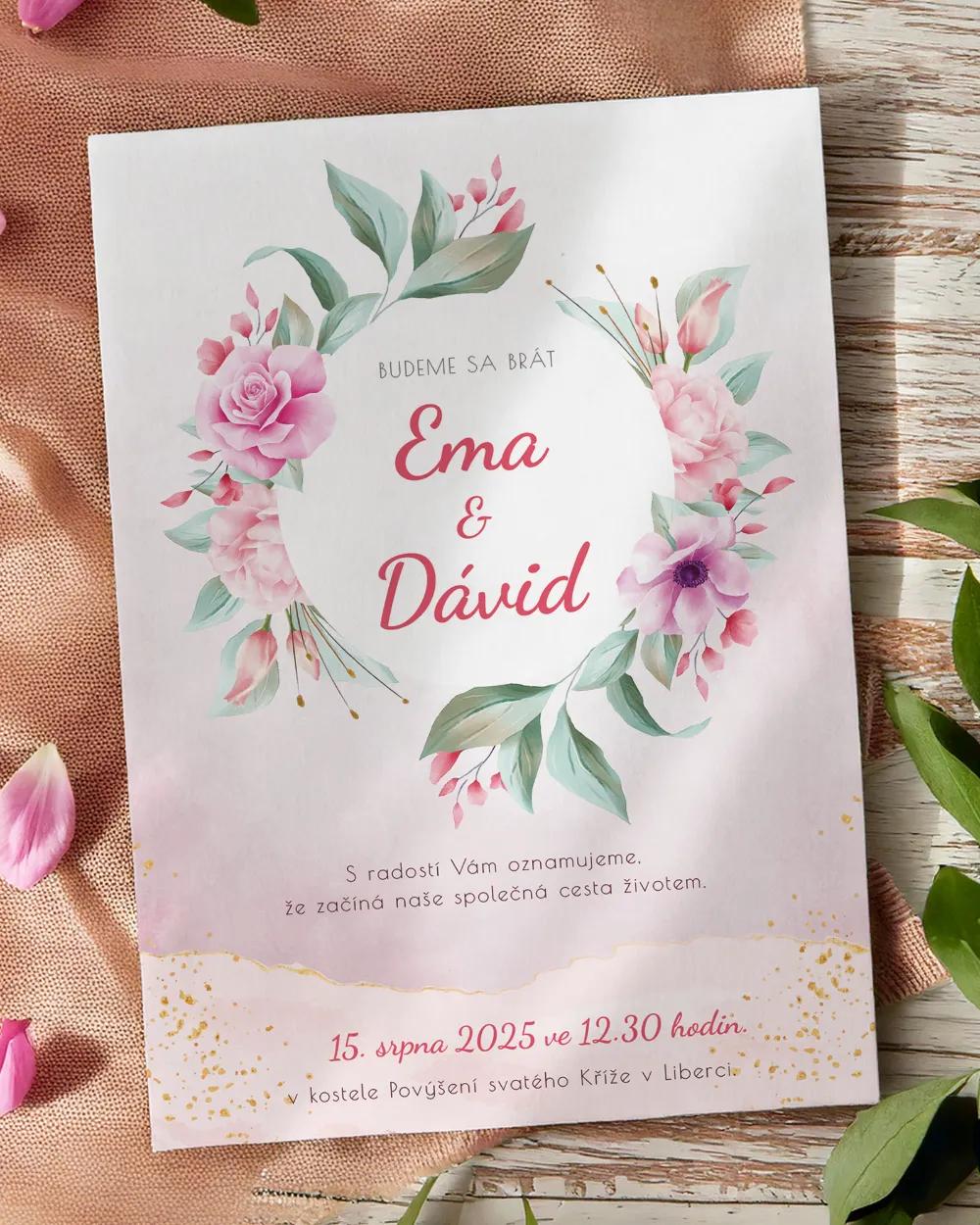 Svatební jmenovky na stůl jsou neodmyslitelným prvkem, který pomůže hostům snadno najít své místo a zároveň dotvoří estetiku svatební hostiny. Motiv šípkových růží působí jemně a romanticky – akvarelové květy v růžových tónech doplňují decentní zlaté tečky, které dodávají designu elegantní a slavnostní nádech. Tento motiv je ideální pro svatby s klasickým, romantickým nebo vintage laděním. Objednávka je jednoduchá: stačí přidat seznam jmen přímo do online editoru nebo vložit text do boxu pro grafika a kompletní zpracování zajistíme vždy zdarma. Jmenovky využijete při usazení hostů na svatebních stolech, v zasedacím pořádku či jako milý detail u výslužek. Vysoce kvalitní tisk a expresní výroba zaručí precizní výsledek, který navíc snadno sladíte s dalšími svatebními tiskovinami ve stejném stylu, jako jsou pozvánky, etikety na lahve, magnetky nebo samolepky.
