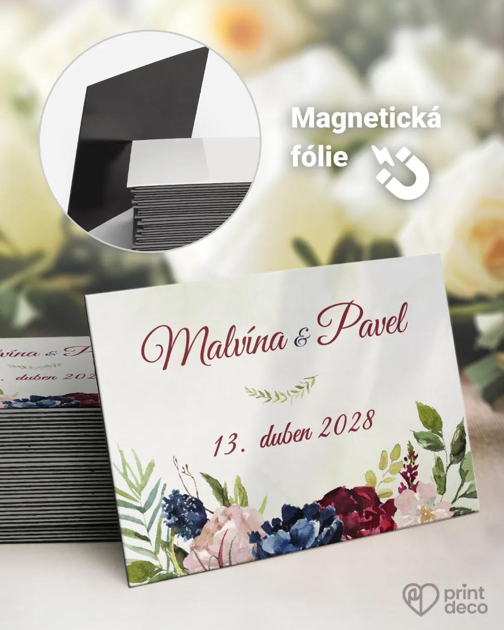 Kruhová svatební magnetka s lidovým motivem květů v červených a zelených tónech potěší hosty jako originální svatební placka plná tradice. Personalizovaná jmény a datem svatby se stane stylovou památkou, kterou si hosté rádi vystaví. Folklorní vzory a svěží barvy krásně oživí svatební stůl a hodí se k tradičním i moderním svatbám. Magnetku sladíte s jmenovkami, etiketami, menu, samolepkami a mnoha dalšími tiskovinami.