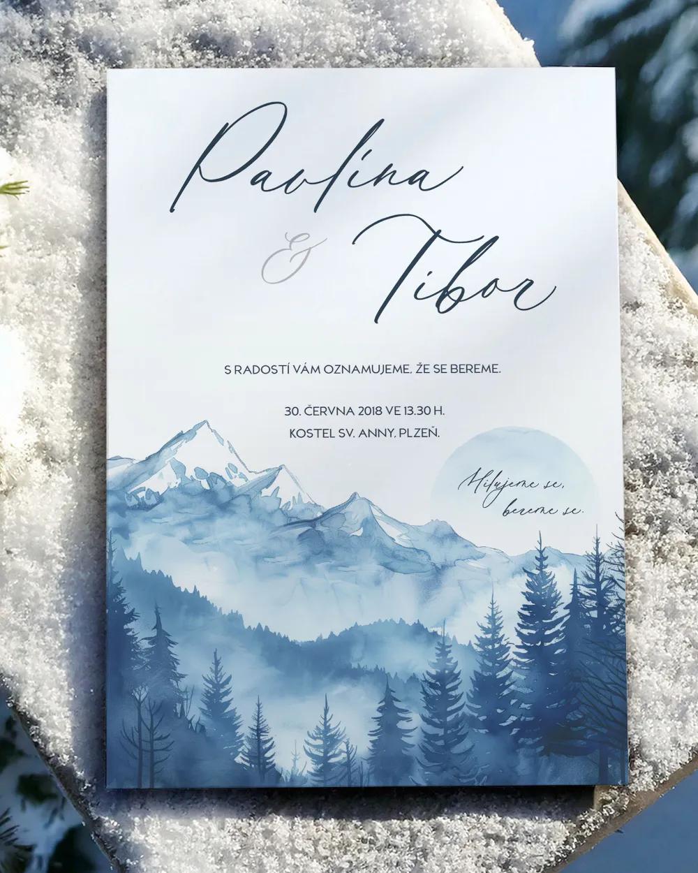 Stylová kruhová kovová svatební magnetka s akvarelovým motivem majestátních modrých hor a lesů působí romanticky a zároveň moderně. Je krásnou vzpomínkou pro hosty a milým detailem, který potěší každého. Personalizovaná jmény a datem svatby se stává jedinečnou památkou s osobním odkazem. Kvalitní tisk na kovovém základu zaručuje dlouhou životnost a elegantní vzhled. Ve stejném motivu můžete sladit i další tiskoviny – etikety, menu či jmenovky – a podtrhnout harmonii výzdoby.