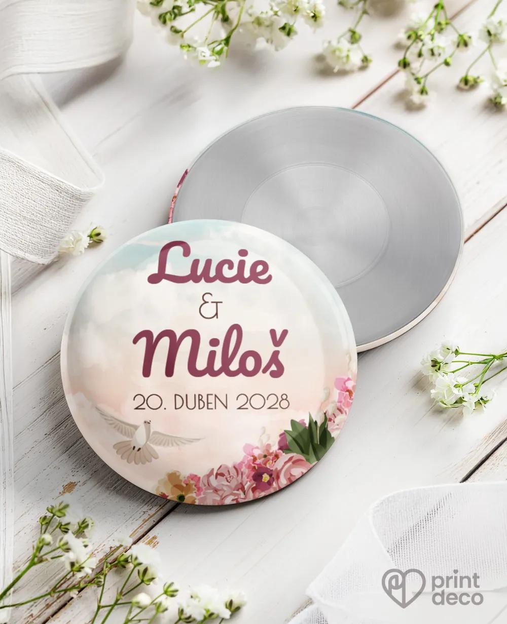 Originální svatební magnetka v jemné zelené barvě, minimalistický design a krásná památka pro hosty jako praktický a stylový svatební dárek.
