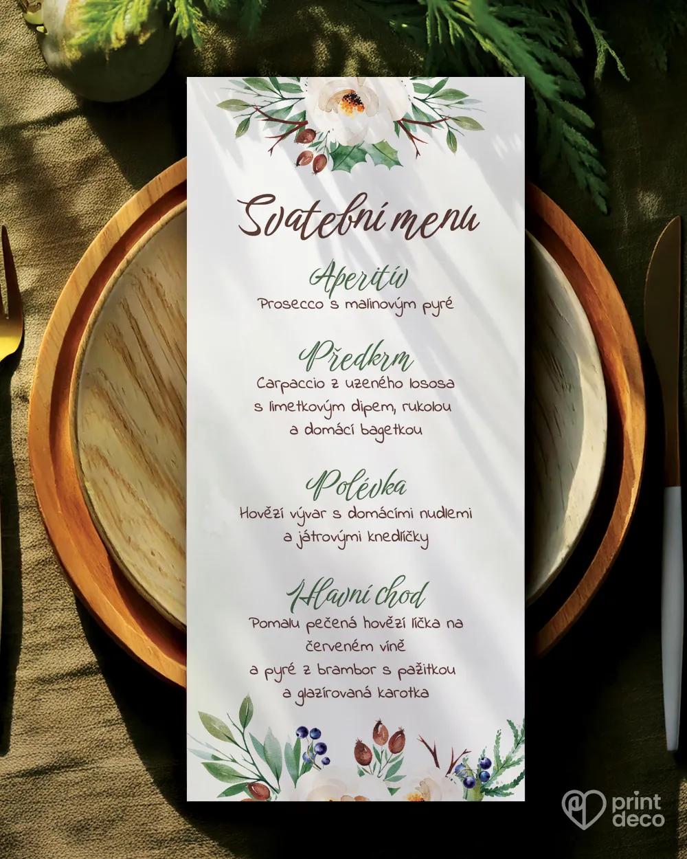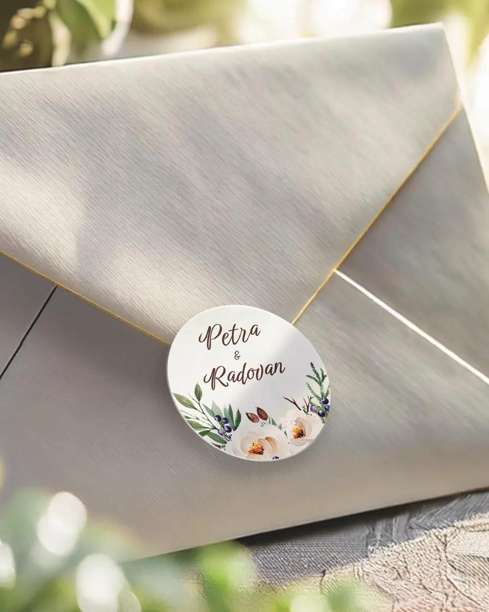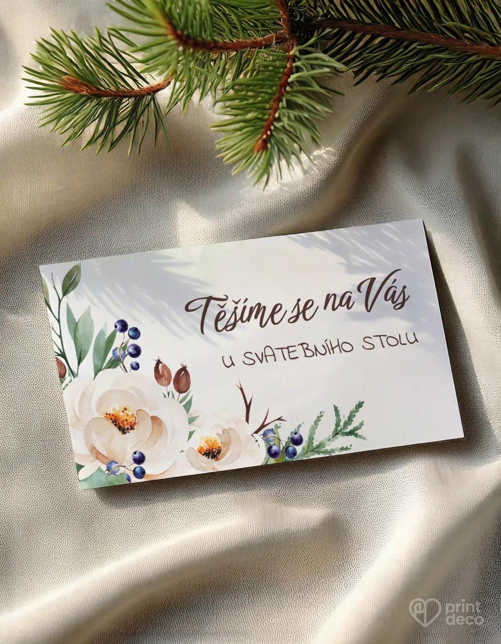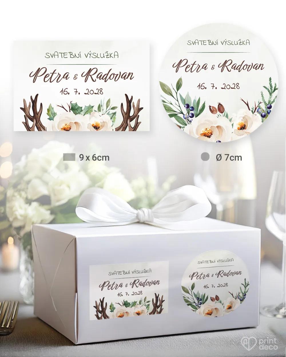 Originální svatební magnetka s lesním motivem, jemnými bílými květy a parožími symbolizuje lásku k přírodě a výjimečný styl. Tento design se hodí na rustikální, lesní či myslivecké svatby a působí elegantně a decentně. Magnetka s jmény a datem vašeho svatebního dne potěší hosty jako milá památka. Lze ji sladit i s dalšími tiskovinami se stejným motivem pro jednotný vzhled výzdoby.