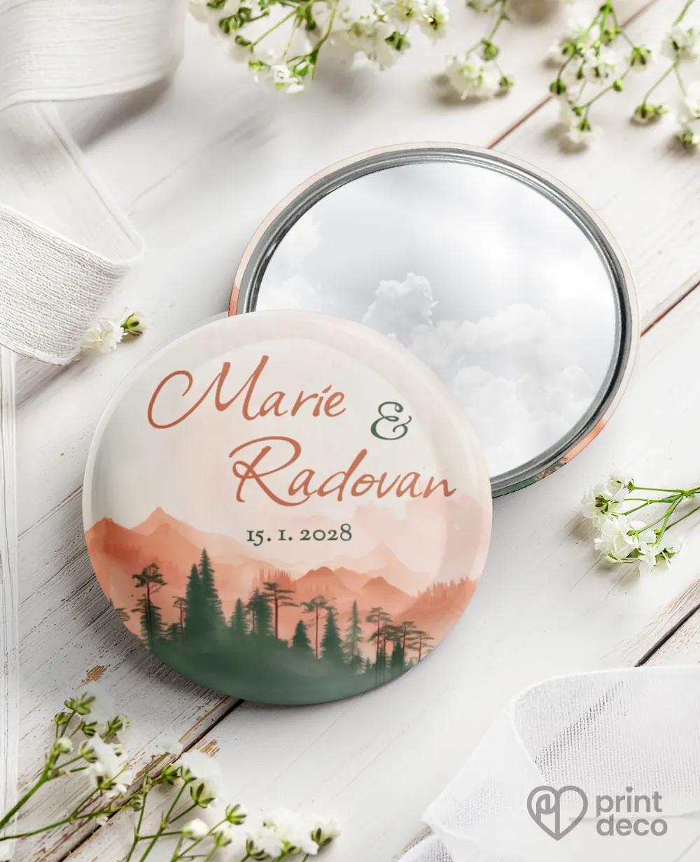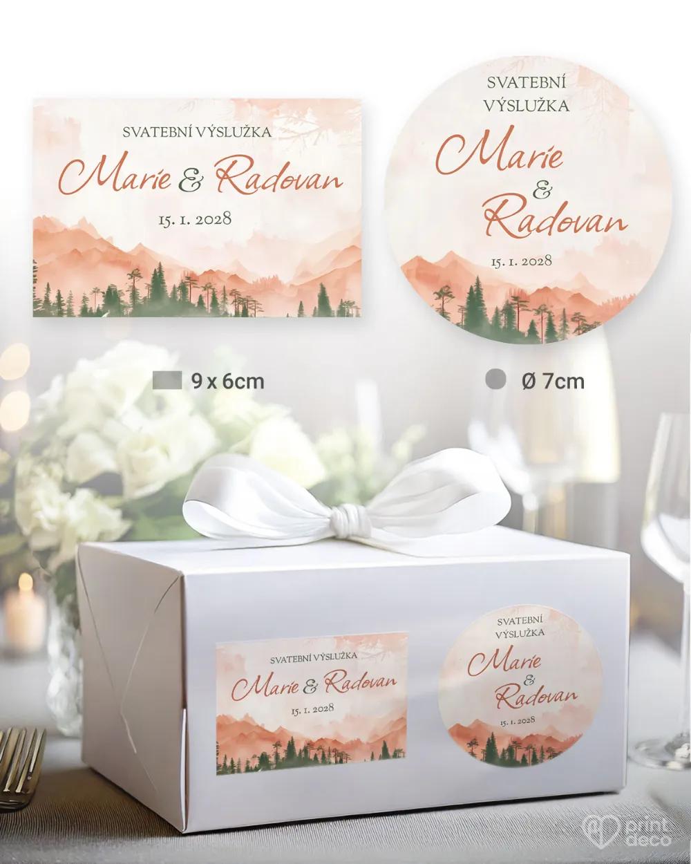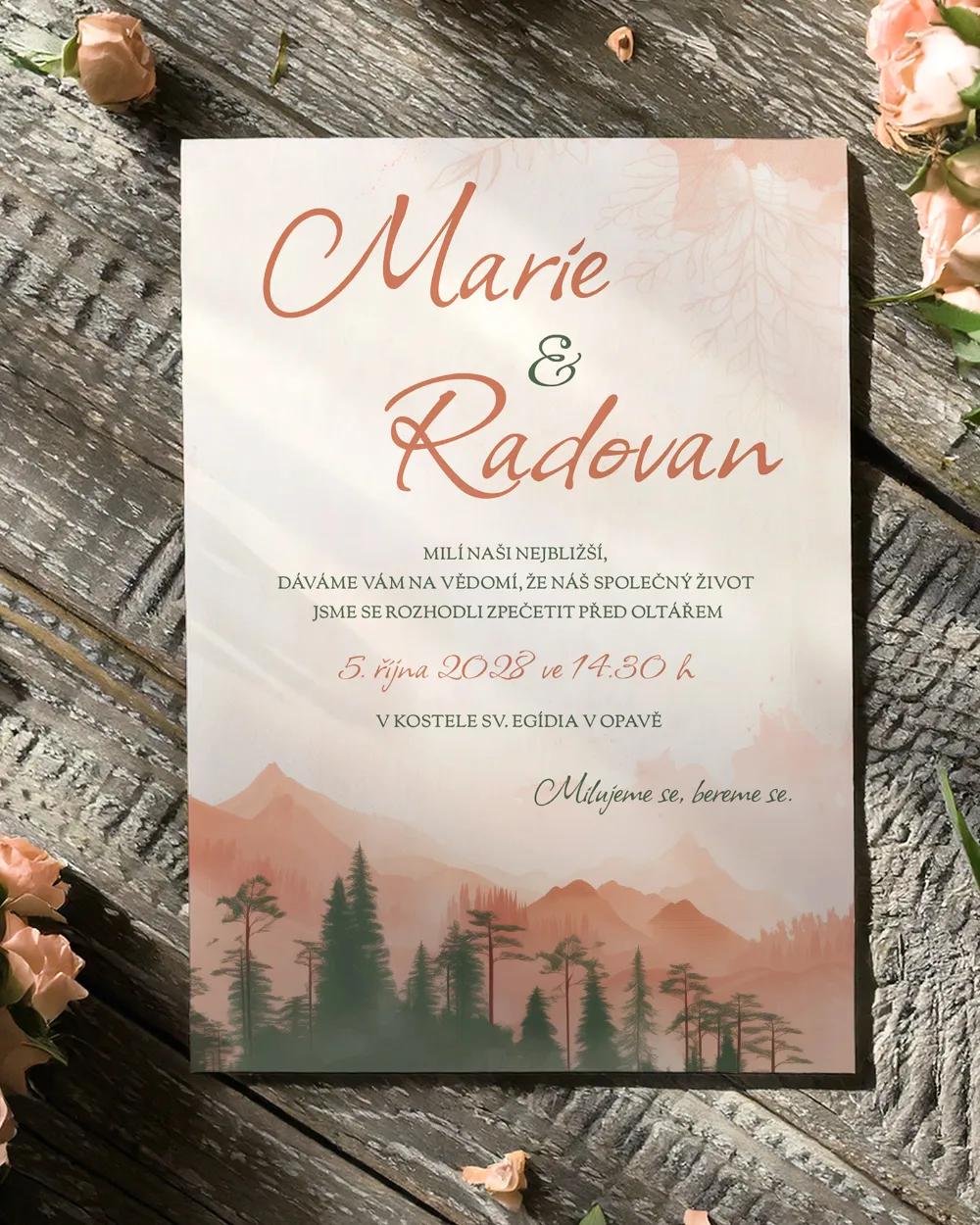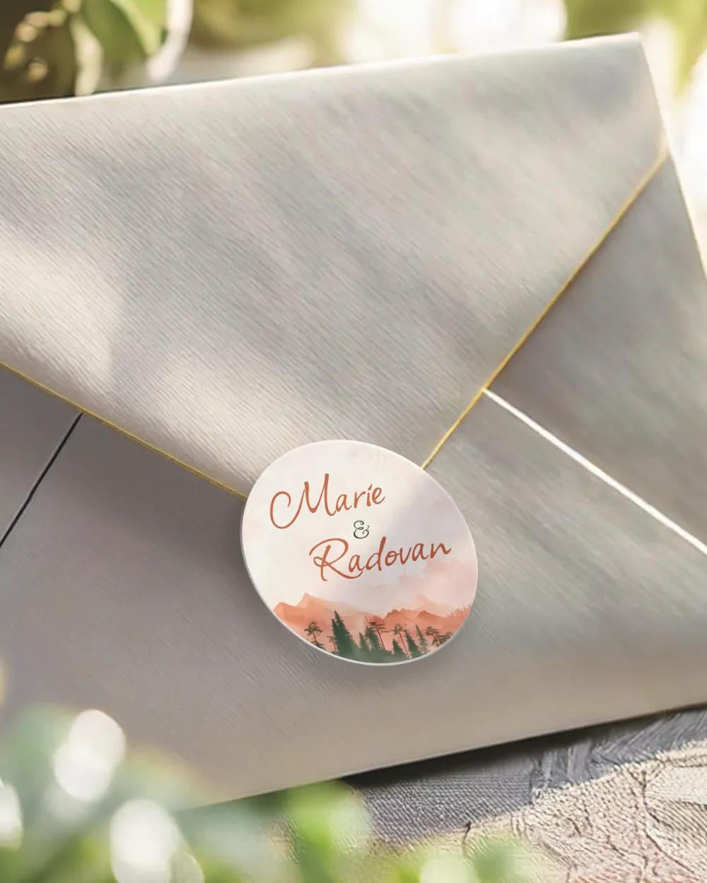 Stylová svatební magnetka s akvarelovým motivem červených hor a jemně zelených stromů navodí romantickou atmosféru plnou elegance. Tato pamětní magnetka pro hosty je nádhernou vzpomínkou na váš svatební den a milým gestem, které ocení všichni pozvaní. Personalizovaná úprava textu s jmény a datem jí dodá jedinečný charakter a výjimečný význam. Kvalitní tisk a decentní barvy zaručí vkusný výsledek. Motiv si můžete sladit i s dalšími svatebními tiskovinami, jako jsou etikety, jmenovky či menu. Dopřejte svým hostům krásnou památku.