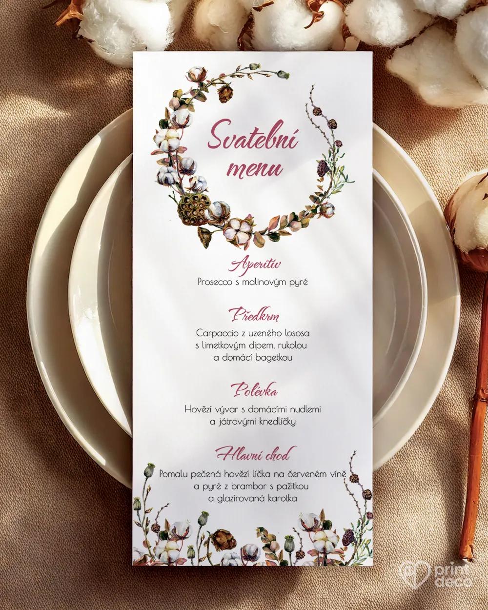 Svatební menu s veselým motivem sedmikrásek dodá výzdobě svěžest, přirozenost a jemně romantický charakter.
