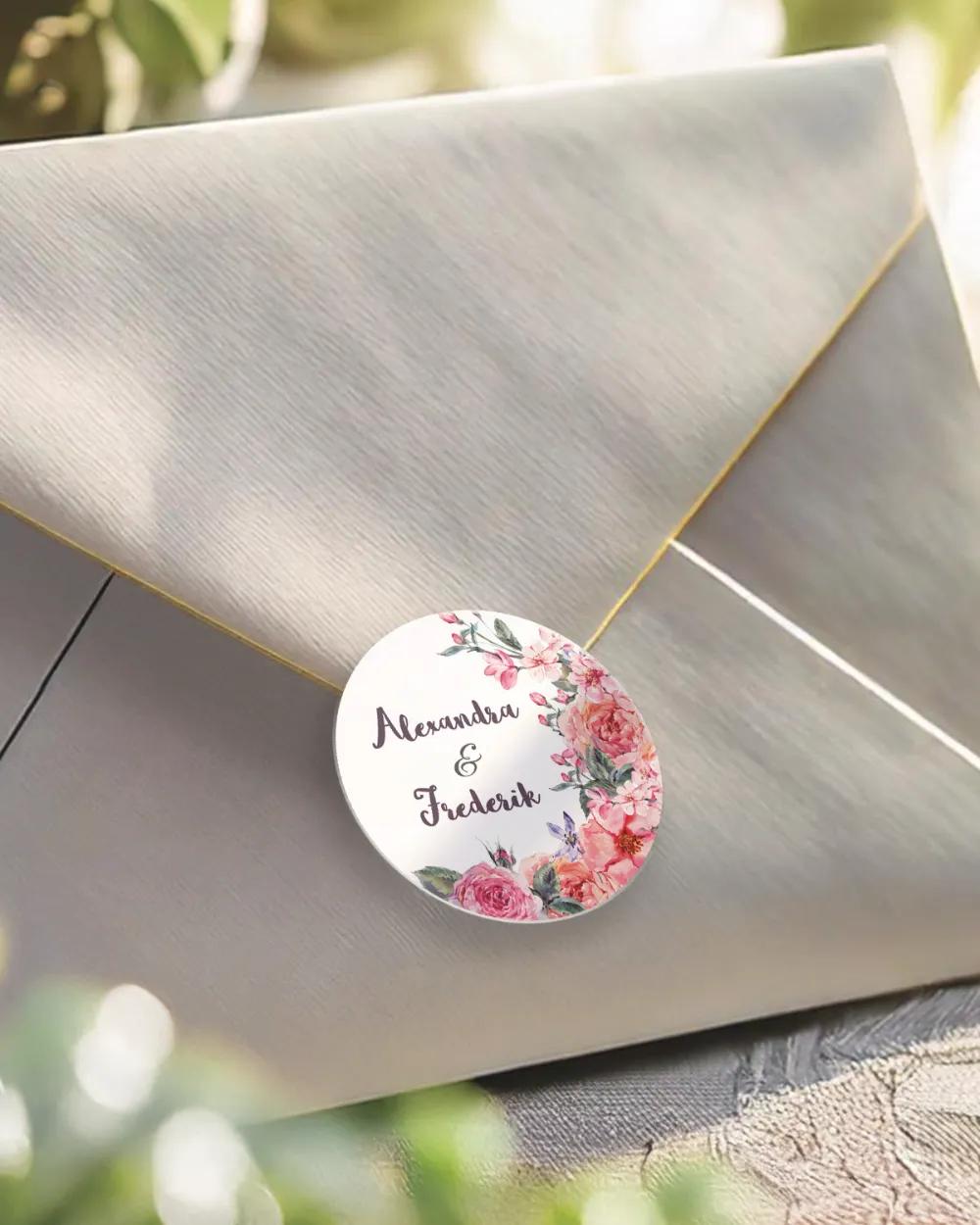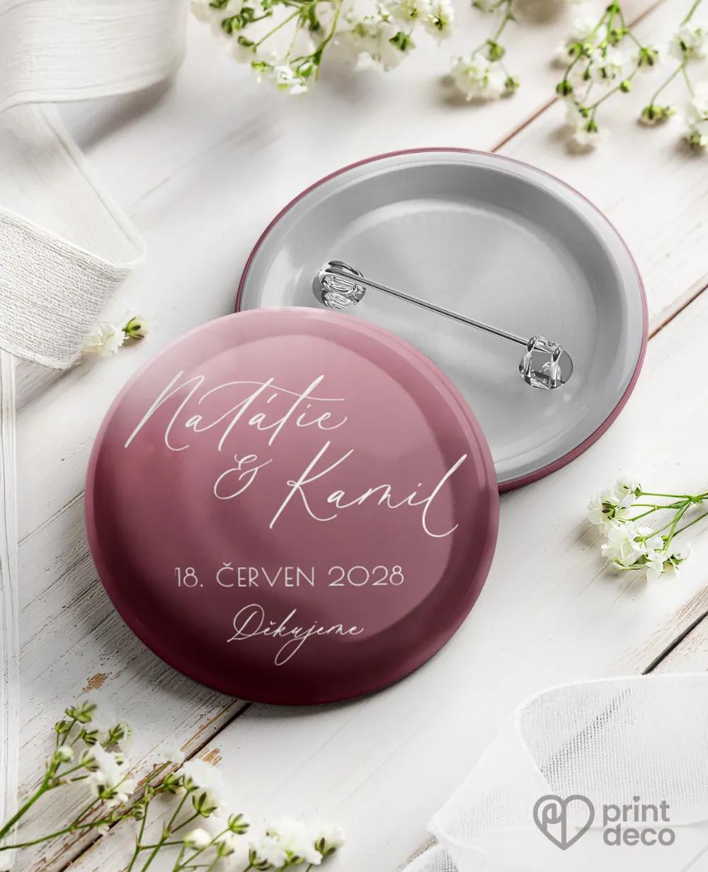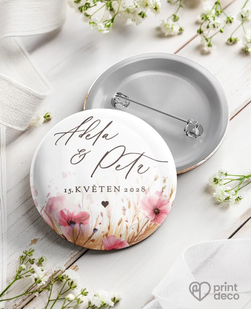 Kruhový kovový svatební odznak se špendlíkem a jemným, přesto výrazným květinovým designem vnese do svatební tabule svěžest a romantiku. Tato originální svatební placka potěší hosty jako milá památka na váš výjimečný den a stylový detail, který zaujme. Odznak je personalizovaný jmény nevěsty a ženicha, datem svatby nebo krátkým textem podle přání, což mu dodává osobitost. Precizní kovové zpracování a elegantní design ladí s dekoracemi a dalšími tiskovinami ve stejném stylu – jmenovkami, menu či etiketami. Dopřejte hostům krásnou památku, která potěší.