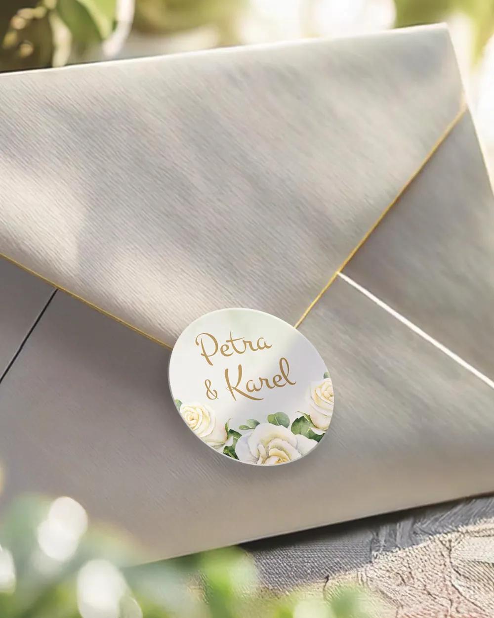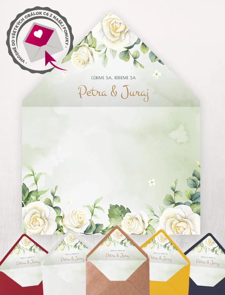 Bílé růže jsou odjakživa symbolem pravé lásky. Pokud jste ji našli i vy, toto oznámení vám pomůže na vaši oslavu lásky připravit i vaše hosty. Jemné svatební oznámení s bílými růžemi doplněné zlatými detaily je přímo stvořené pro romantickou svatbu. Také si můžete z naší nabídky vybrat další svatební tiskoviny, jako etikety na láhve či jmenovky, které společně vytvoří jeden krásný vizuální zážitek.