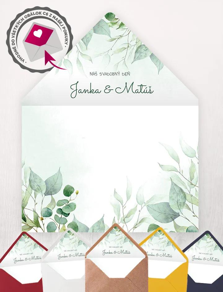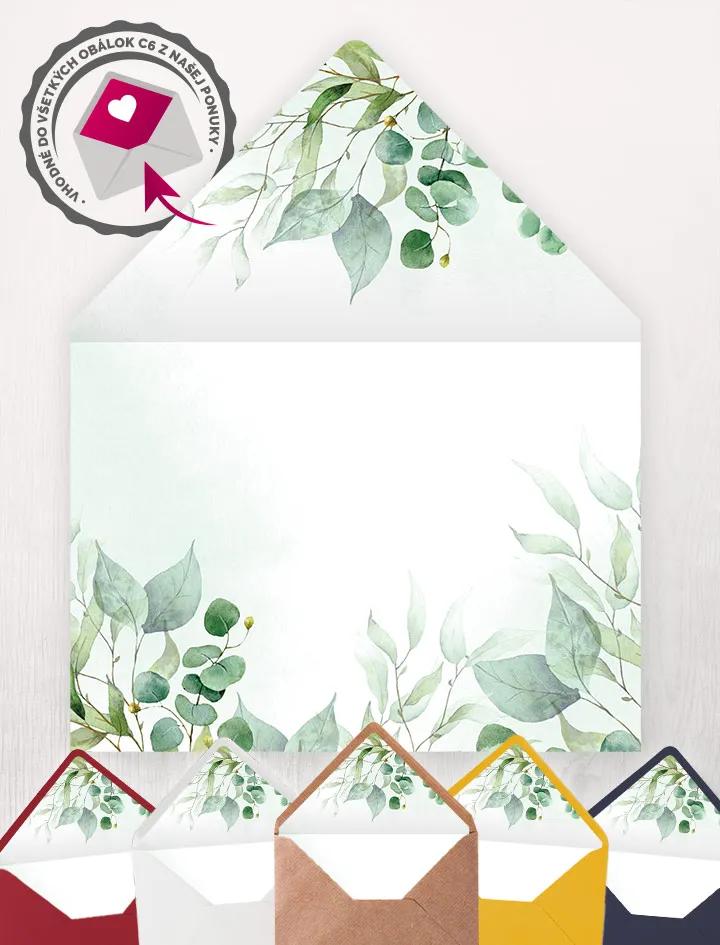 Greenery 05 svatební oznámení s moderním přírodním designem. Čerstvý styl, vysoká kvalita a expresní tisk pro vaši dokonalou svatbu.