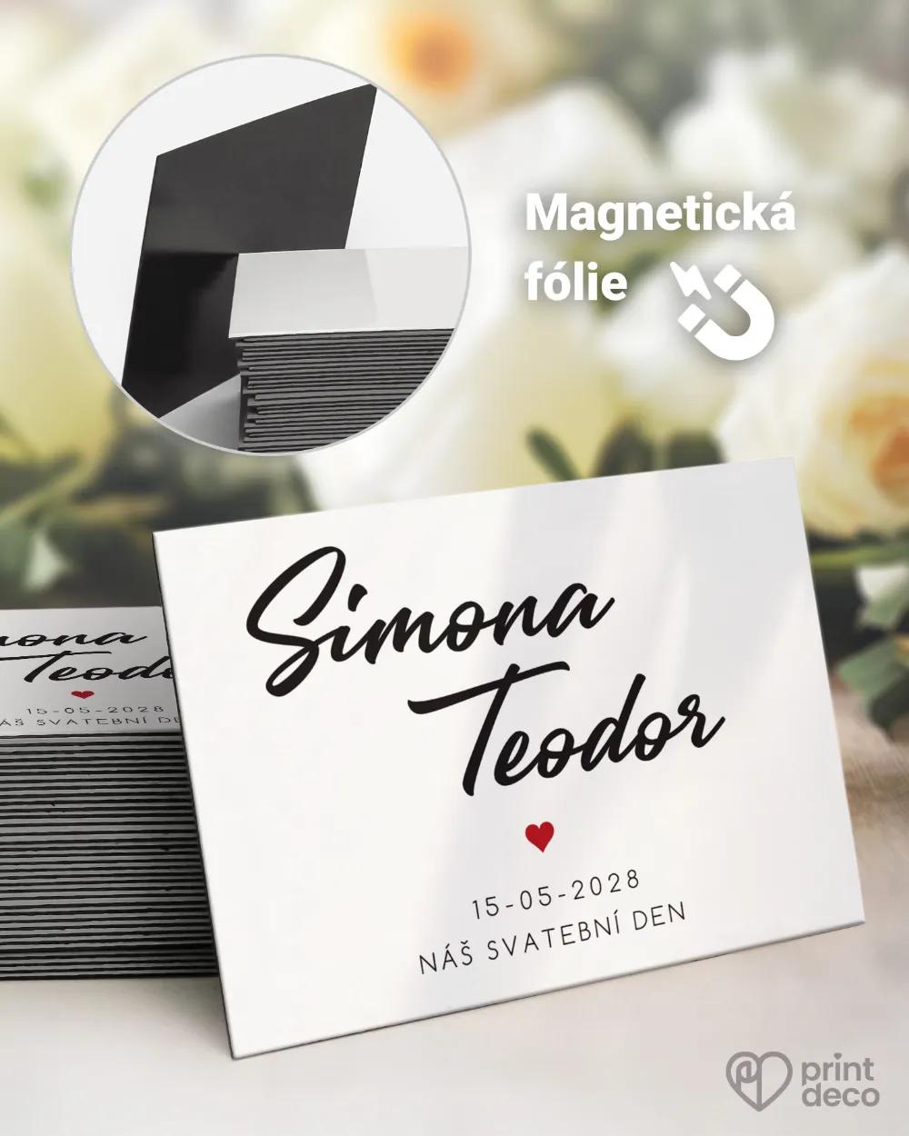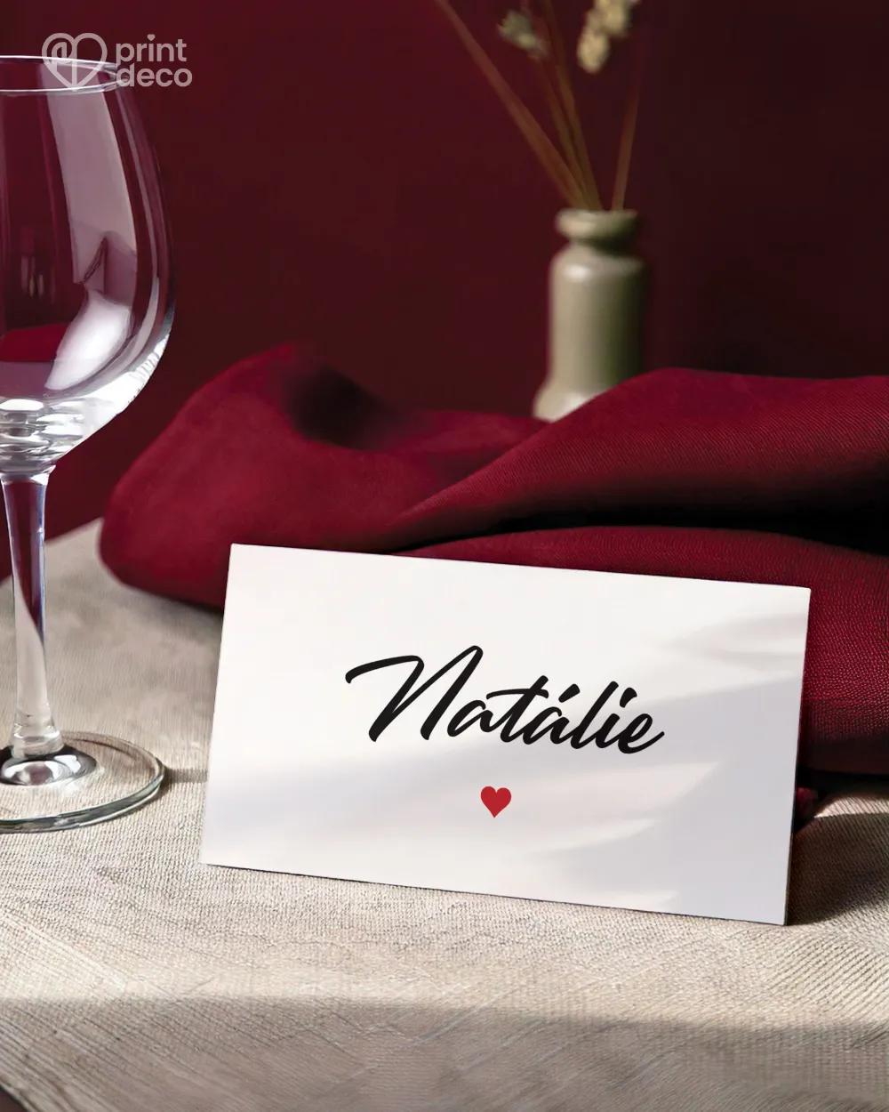 Svatební oznámení v moderním minimalistickém stylu s kontrastním ručně psaným písmem a čistě bílým pozadím působí elegantně a nadčasově. Jemný detail v podobě červeného srdíčka dodává romantický akcent a podtrhuje jednoduchost celkového vzhledu. Ideální volba pro páry, které upřednostňují čisté, decentní a zároveň stylové svatební tiskoviny. Ve stejném stylu jsou dostupné také svatební tiskoviny jako jmenovky, menu, etikety, pozvánky ke stolu, samolepky a mnoho dalšího.