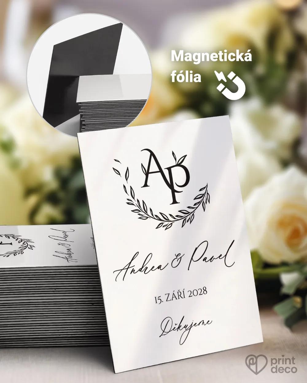 Svatební oznámení v elegantním černobílém stylu s jemnými rostlinnými detaily a monogramem působí nadčasově a sofistikovaně. Kombinace ručně psaného a serifového písma vytváří harmonický kontrast, který podtrhuje exkluzivitu a vkusnost tohoto provedení. Čisté linie a minimalistický styl činí z tohoto oznámení ideální volbu pro páry, které upřednostňují klasickou eleganci s moderním nádechem. Ve stejném stylu jsou dostupné také svatební tiskoviny jako jmenovky, menu, etikety, pozvánky ke stolu, samolepky a mnoho dalšího.