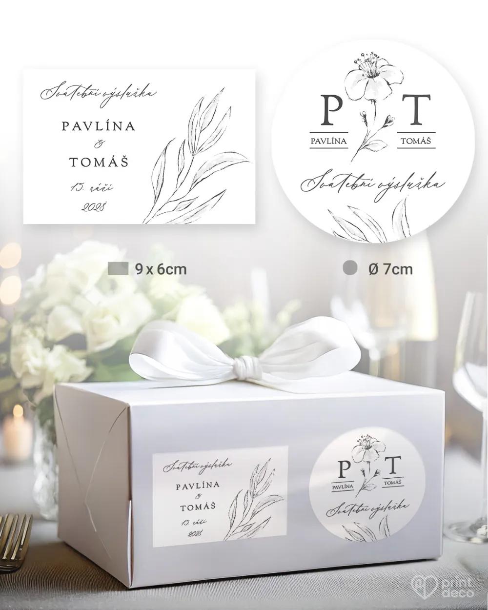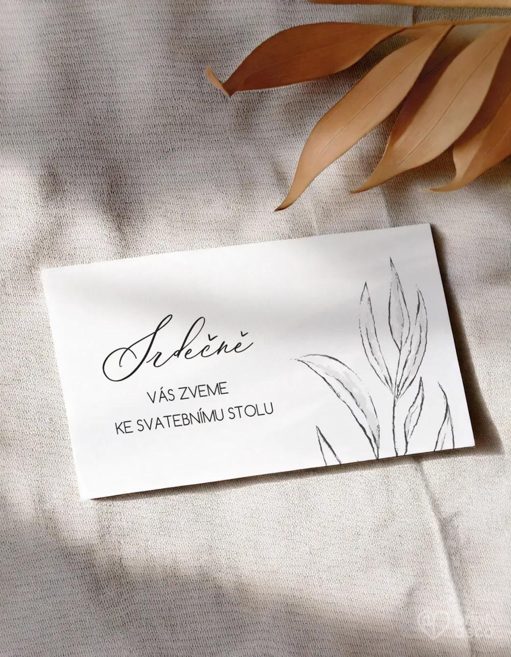 Svatební oznámení v černobílém minimalistickém stylu s jemnými květinovými ilustracemi. Elegantní, nadčasové a vhodné pro moderní svatby.