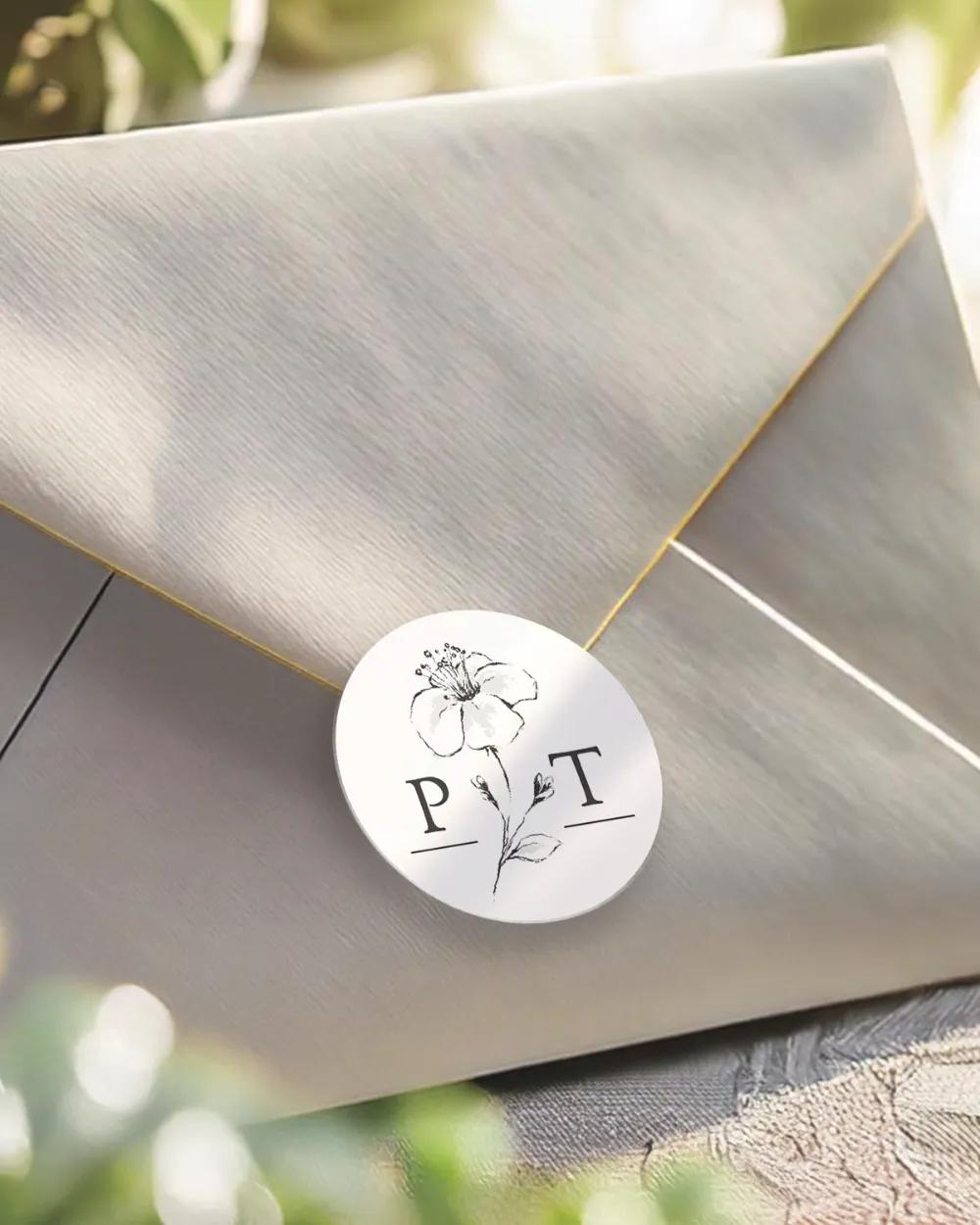 Svatební oznámení v černobílém minimalistickém pojetí s jemnými květinovými ilustracemi působí nadčasově a elegantně. Kombinace serifového písma s ručně psanými detaily vytváří vyvážený vzhled, který je ideální pro páry preferující čistou estetiku a moderní jednoduchost. Jemné květinové prvky dodávají oznámení romantický a sofistikovaný nádech, který se skvěle hodí k elegantním a klasickým svatbám. Ve stejném stylu jsou dostupné také svatební tiskoviny jako jmenovky, menu, etikety, pozvánky ke stolu, samolepky a mnoho dalšího.