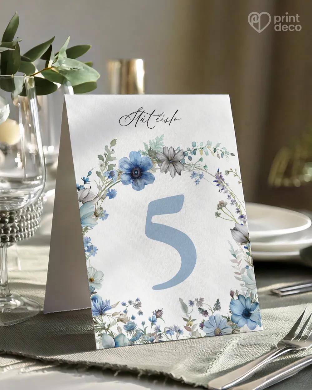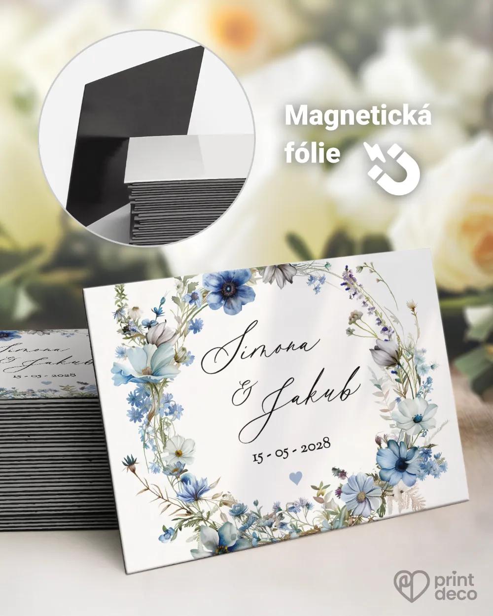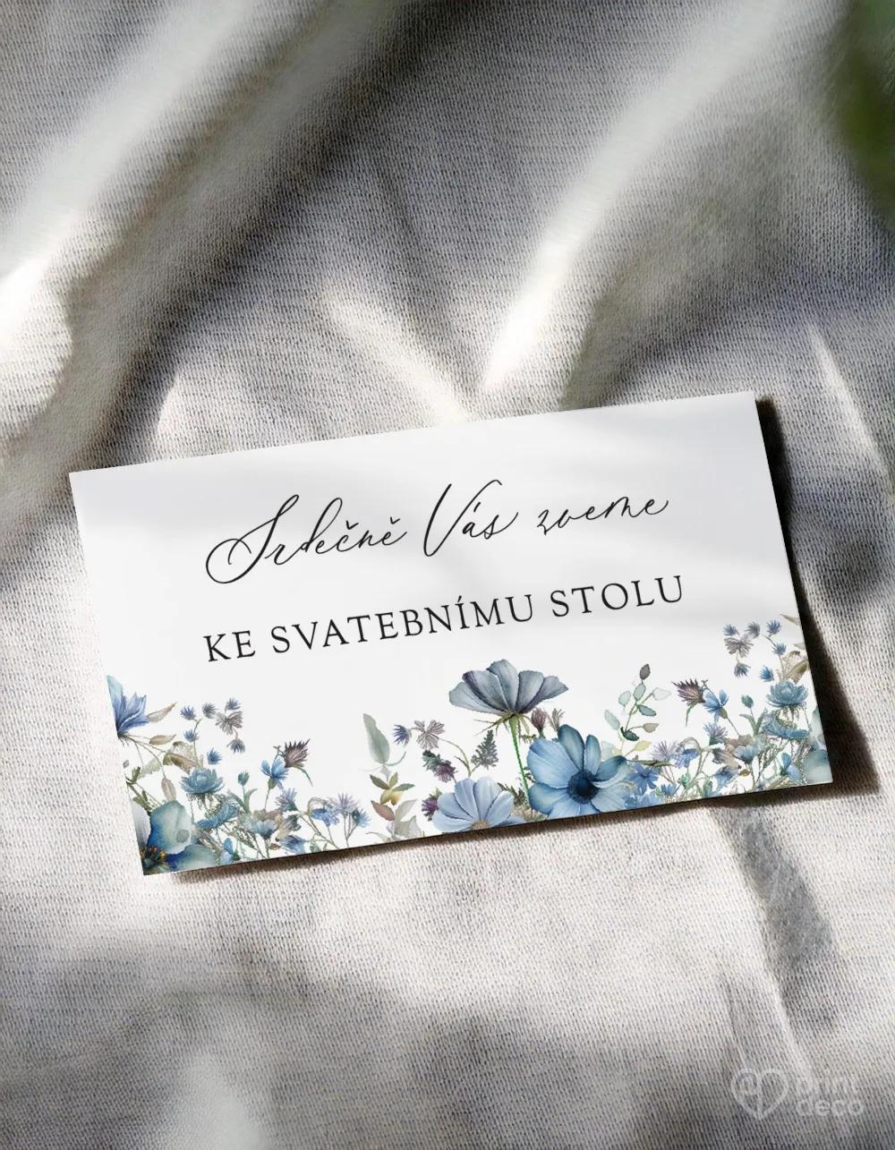 Svatební oznámení Modrý věneček s jemným květinovým motivem v modrých tónech, ideální pro romantické a vintage svatby s elegantním designem.