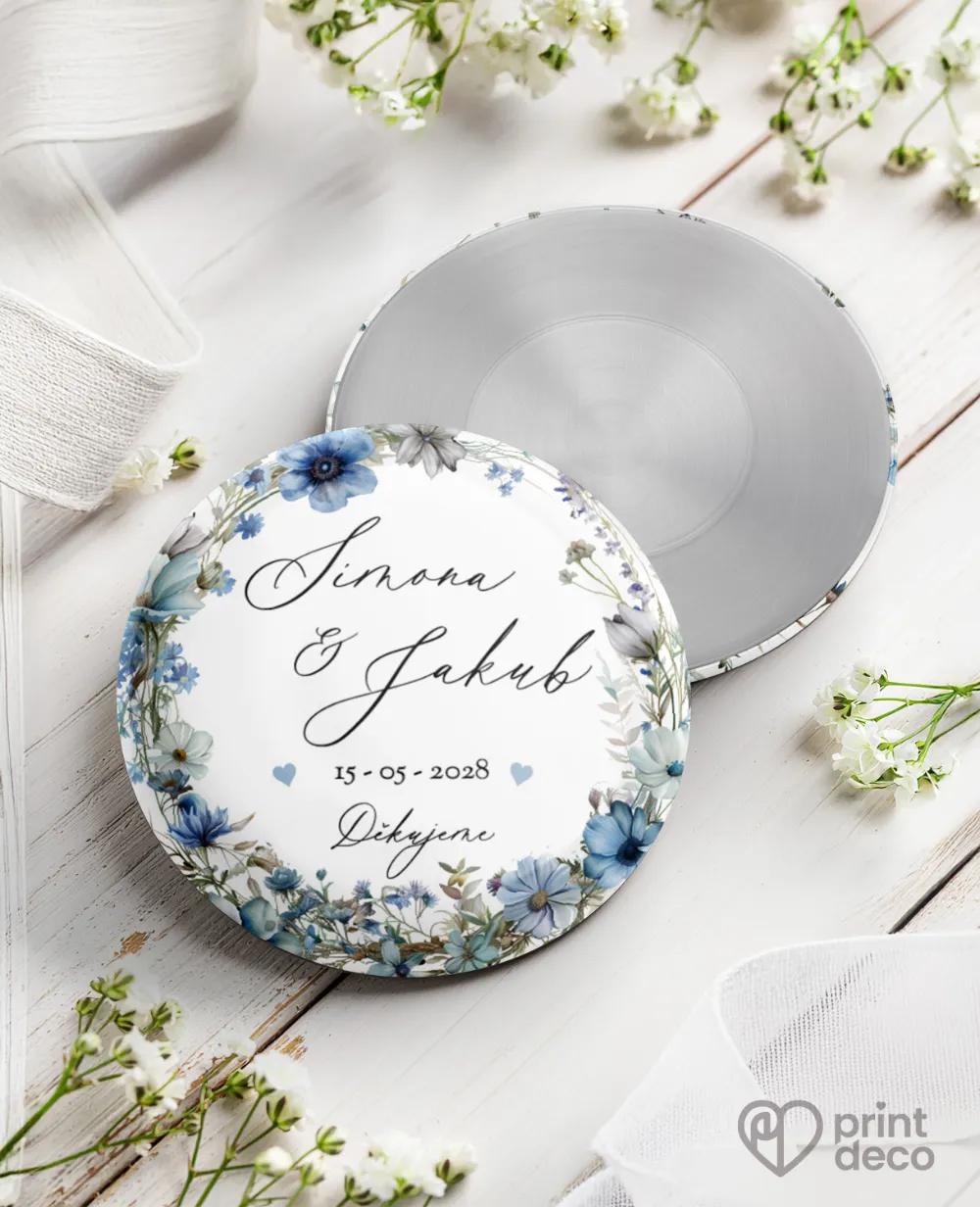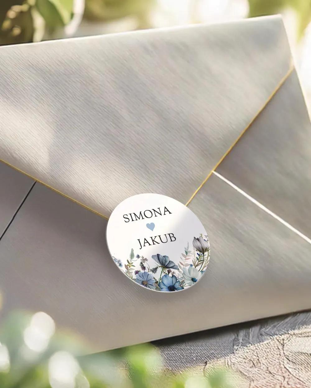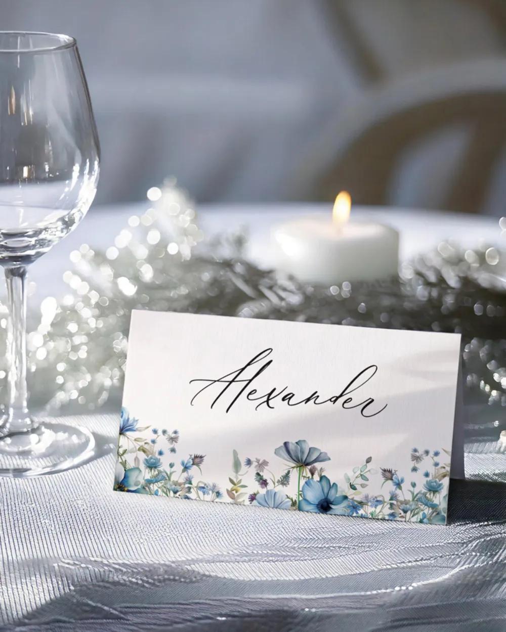 Svatební oznámení Modrý věneček s jemným květinovým motivem v modrých tónech, ideální pro romantické a vintage svatby s elegantním designem.