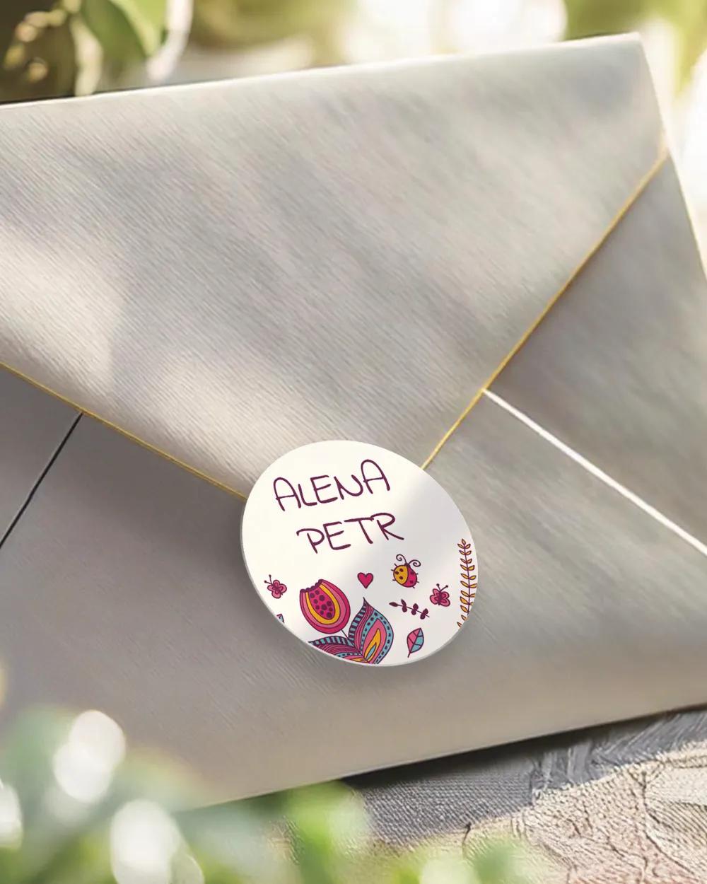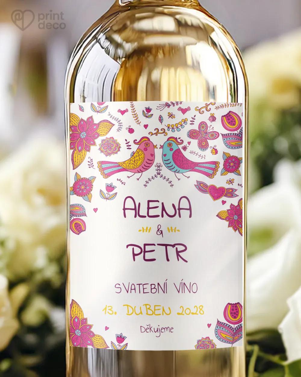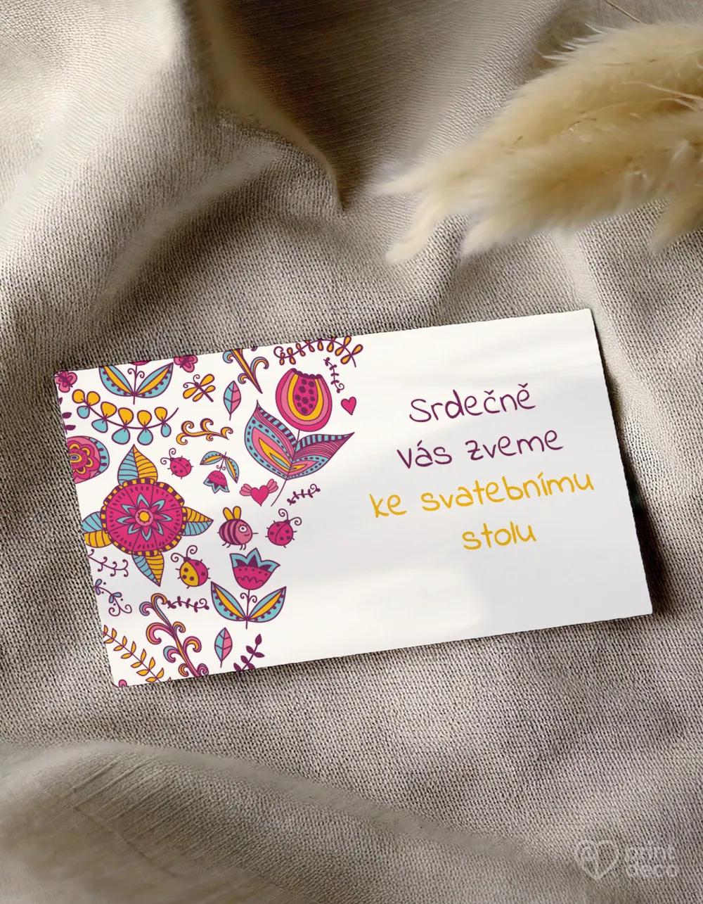 Pro milovníky barev přinášíme zajímavé a originální svatební oznámení. Na bílém pozadí vynikají ilustrovaní ptáčci v různých barvách – růžové, modré a žluté. V těchto barvách si můžete dozdobit i místo oslavy, či si ve stejném motivu vybrat z naší nabídky i další tiskoviny, například jmenovky, etikety na láhve či památeční magnetky a zaručujeme vám maximální spokojenost.