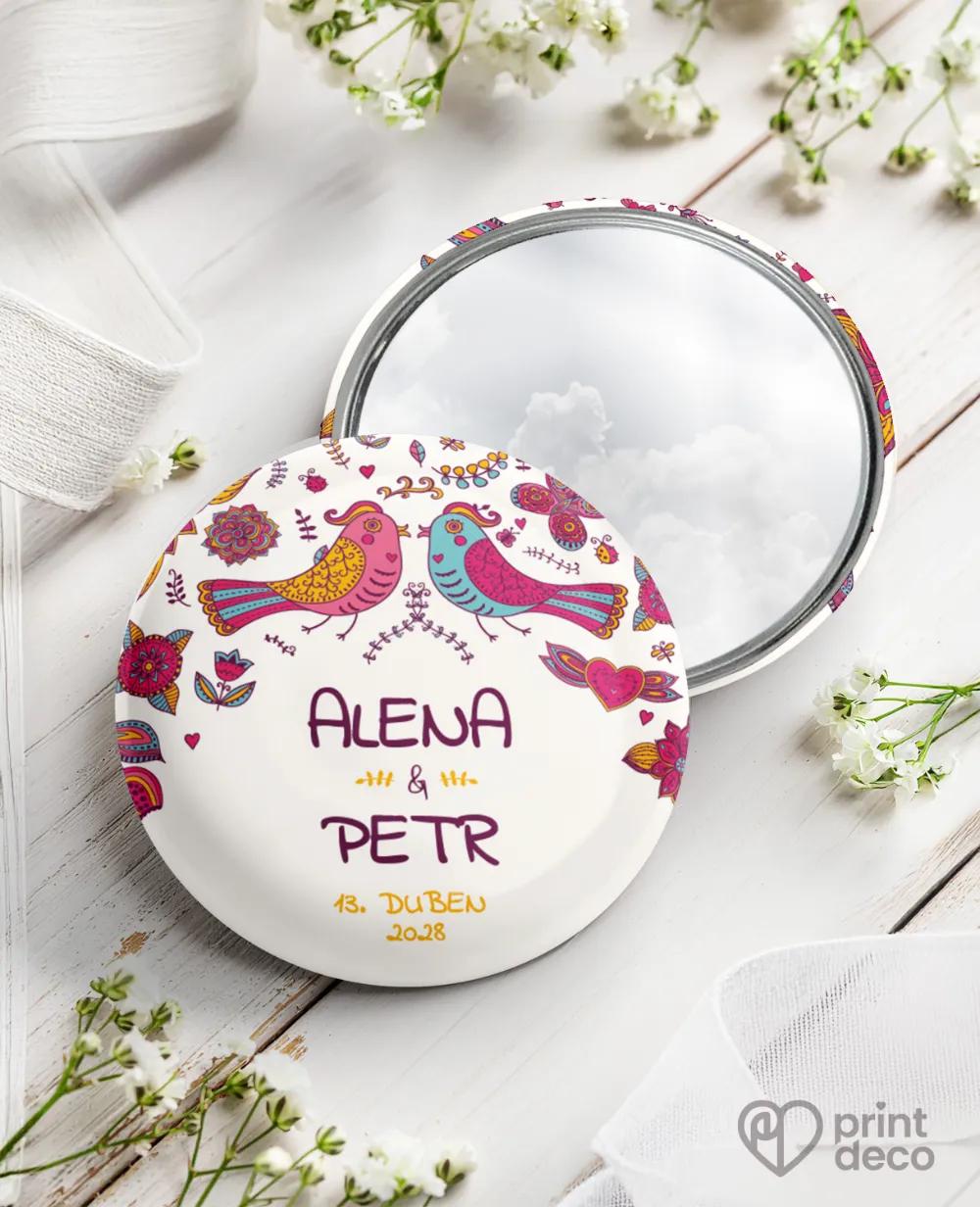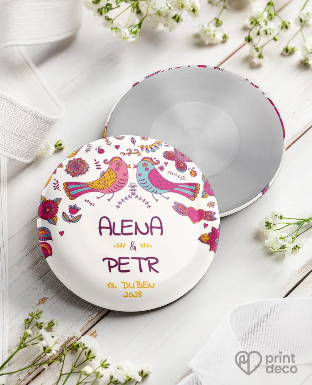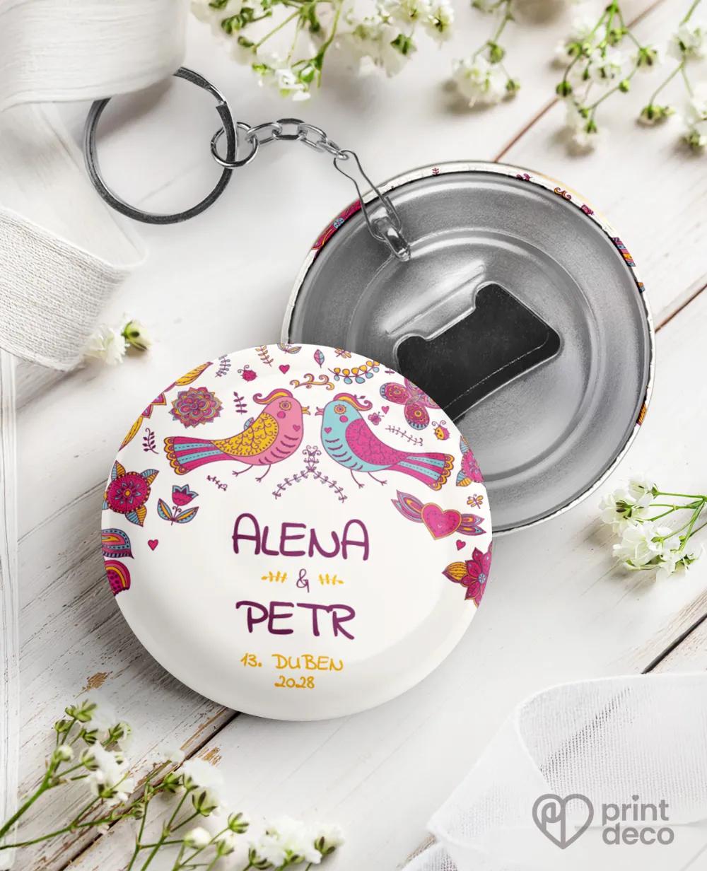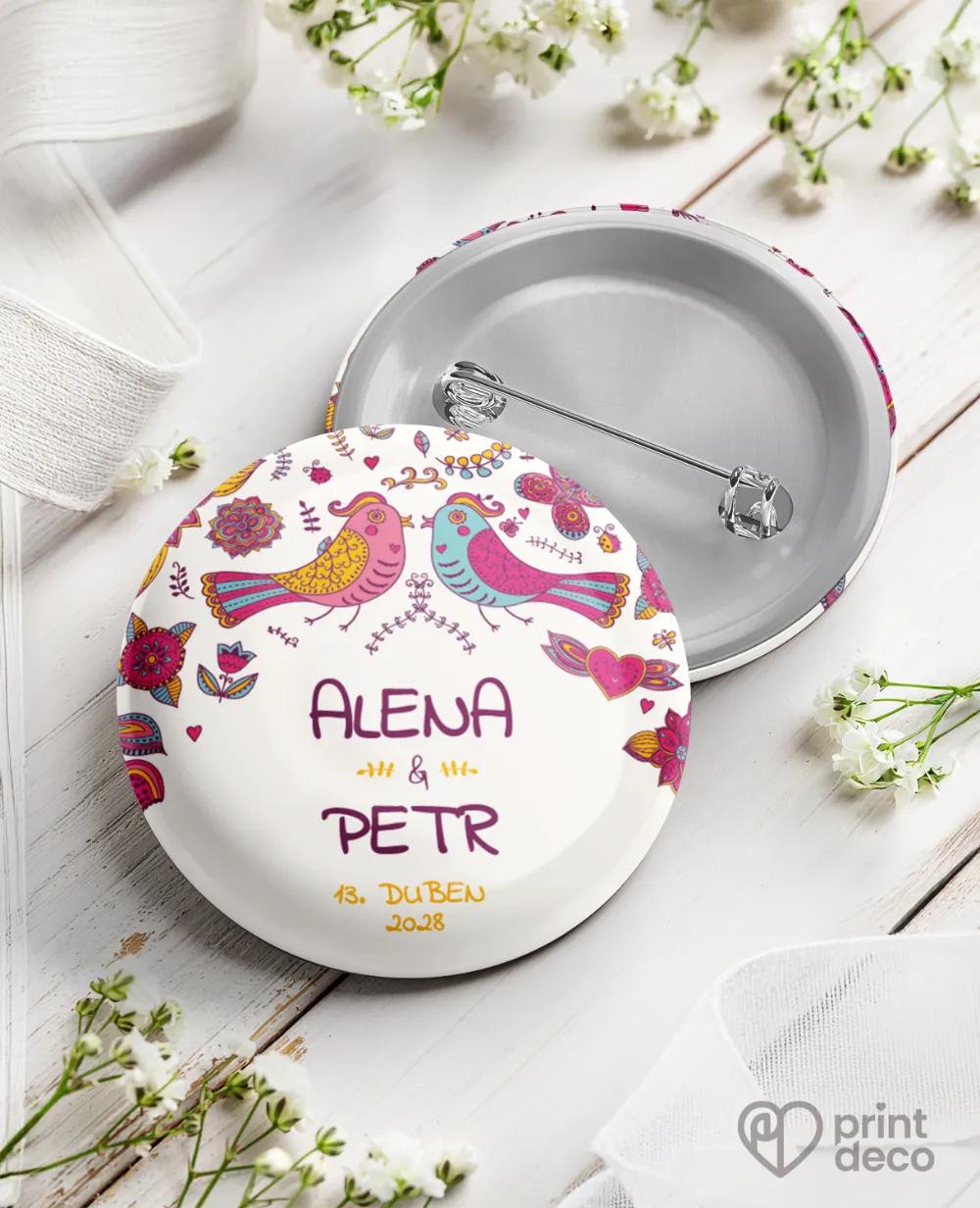 Pro milovníky barev přinášíme zajímavé a originální svatební oznámení. Na bílém pozadí vynikají ilustrovaní ptáčci v různých barvách – růžové, modré a žluté. V těchto barvách si můžete dozdobit i místo oslavy, či si ve stejném motivu vybrat z naší nabídky i další tiskoviny, například jmenovky, etikety na láhve či památeční magnetky a zaručujeme vám maximální spokojenost.