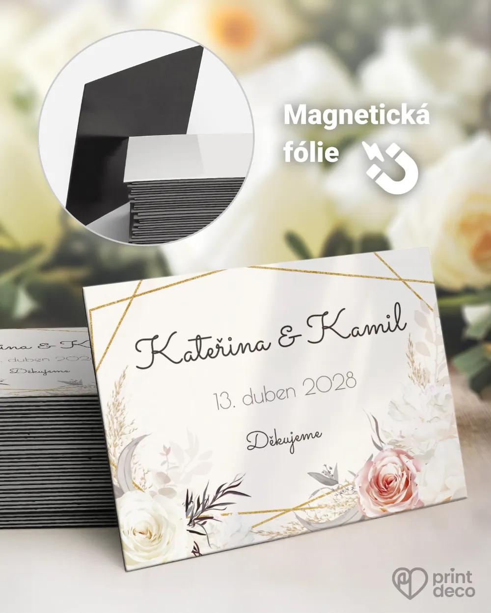 Svatební oznámení – Rozkvetlé květy působí velmi slavnostně, přičemž zároveň dýchají krásou romantiky. Doplněné o ozdobný rámeček netradičního tvaru zajímavým způsobem zvýrazňují jména snoubenců. Zaujaly vás? V tomto motivu Vám rádi připravíme veškeré svatební tiskoviny. Pozvánky ke stolu, jmenovky, etikety na lahve, samolepky na výslužky i magnetky pro hosty tak budou krásně sladěné.