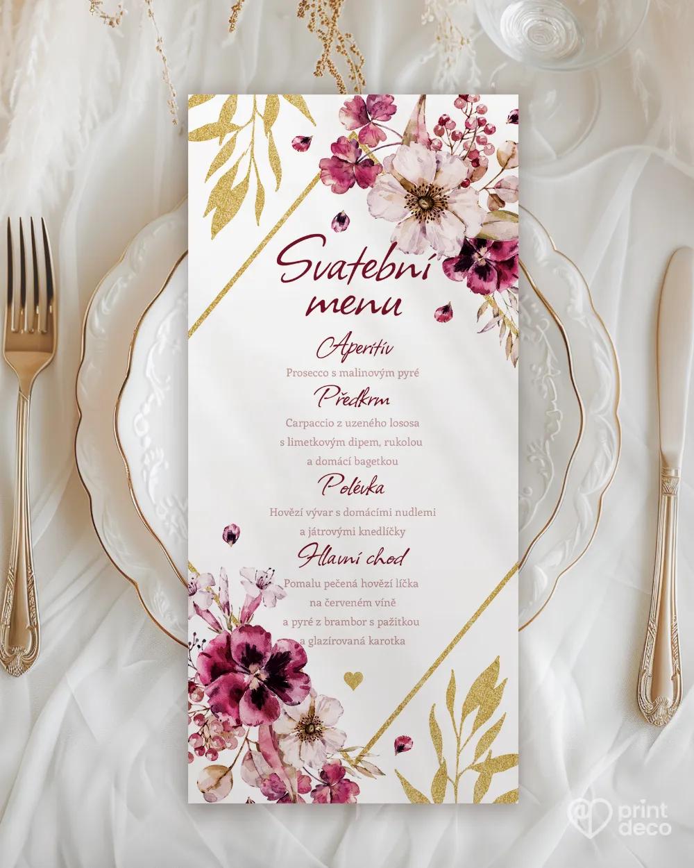 Romantická svatební oznámení Rozkvetlé květy 02 s květinovým rámečkem. Kvalitní tisk, expresní výroba a možnost dalších tiskovin.