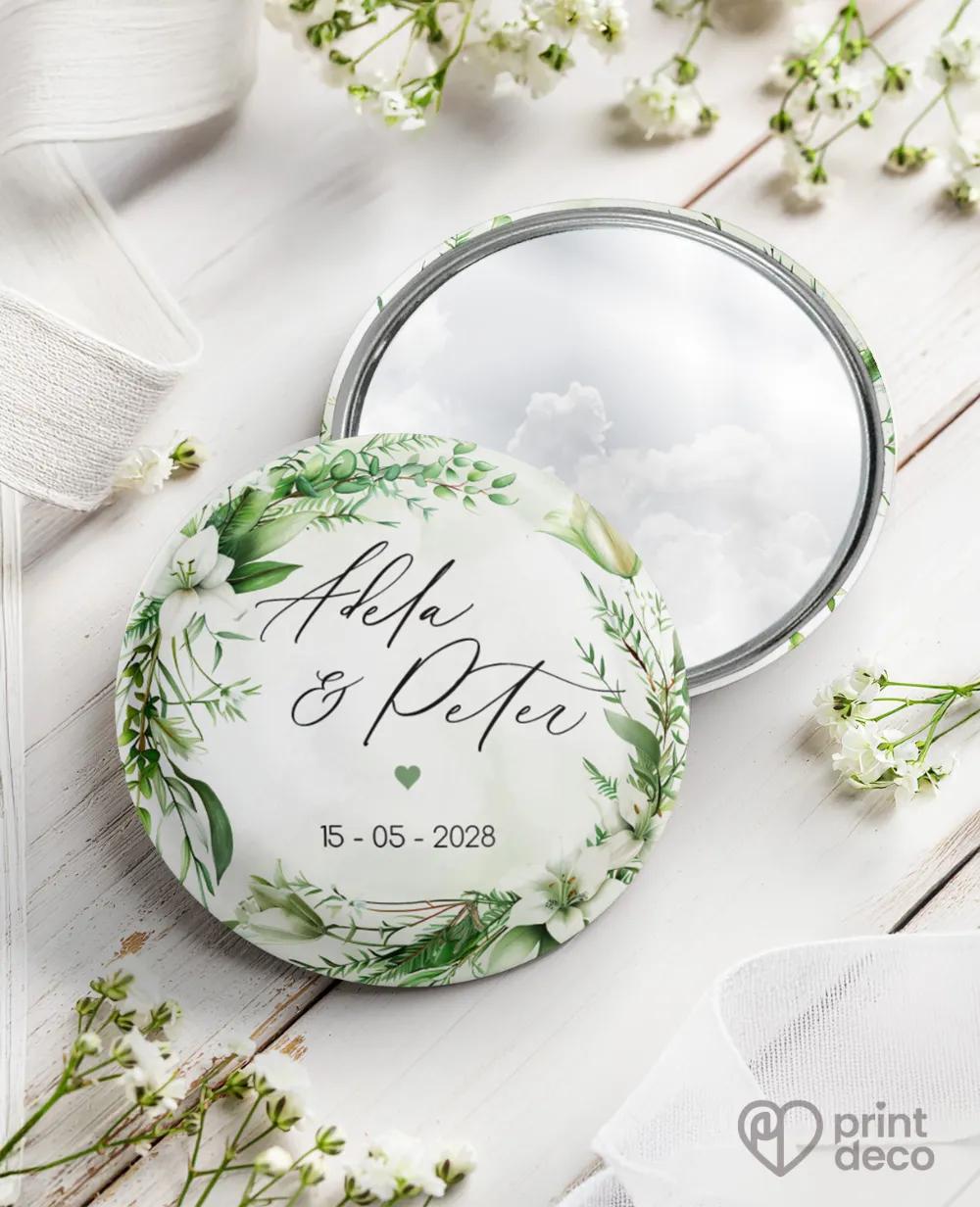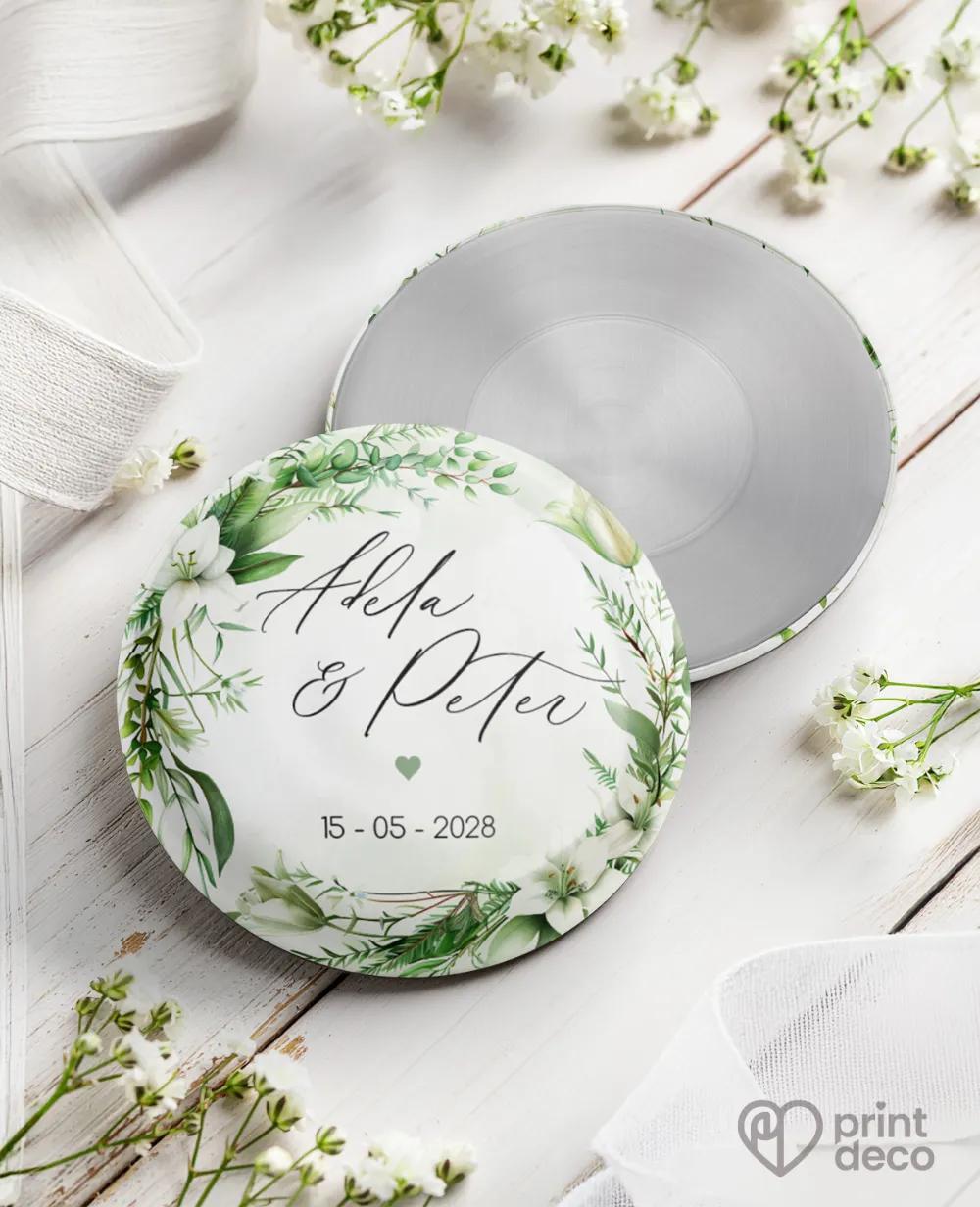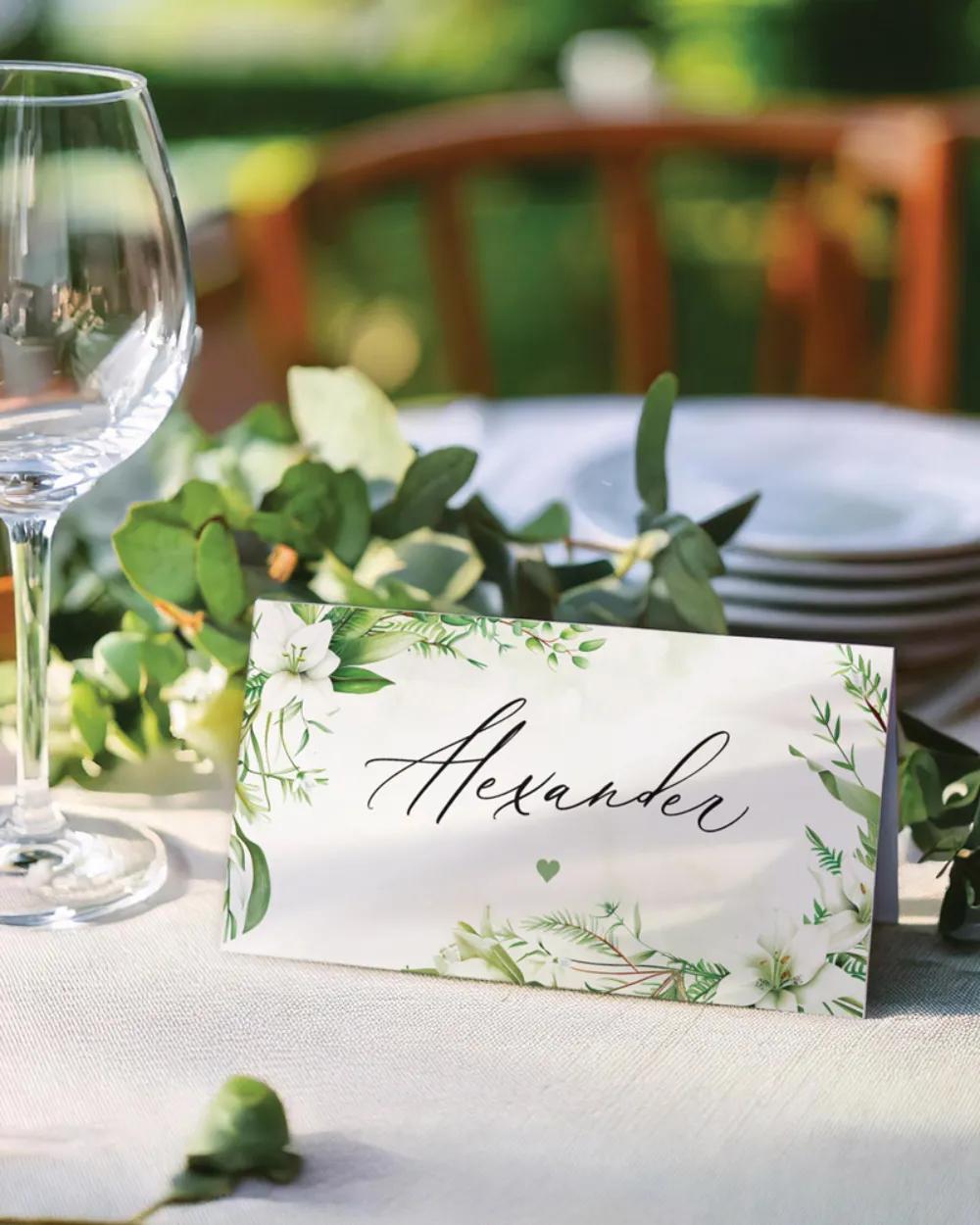 Svatební oznámení s možností vložení vlastní fotografie je zdobeno elegantním květinovým věncem v přírodních zelených tónech s bílými liliemi. Jemné akvarelové pozadí dodává celkovému vzhledu romantiku a vytříbenost, zatímco kombinace ručně psaného a moderního písma podtrhuje jeho nadčasový charakter. Tento styl je ideální pro svatby v přírodním, minimalistickém nebo elegantním duchu a nabízí nádherný způsob, jak oznámit svůj velký den s osobním dotekem. Ve stejném stylu jsou dostupné také svatební tiskoviny jako jmenovky, menu, etikety, pozvánky ke stolu, samolepky a mnoho dalšího.