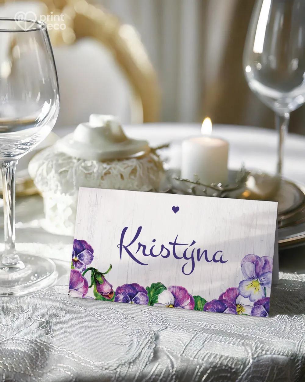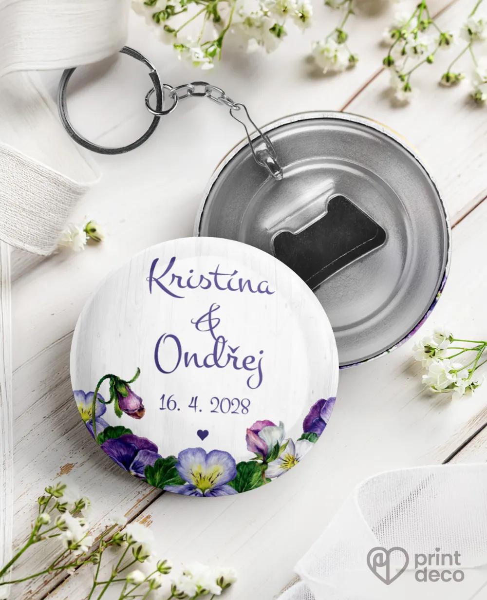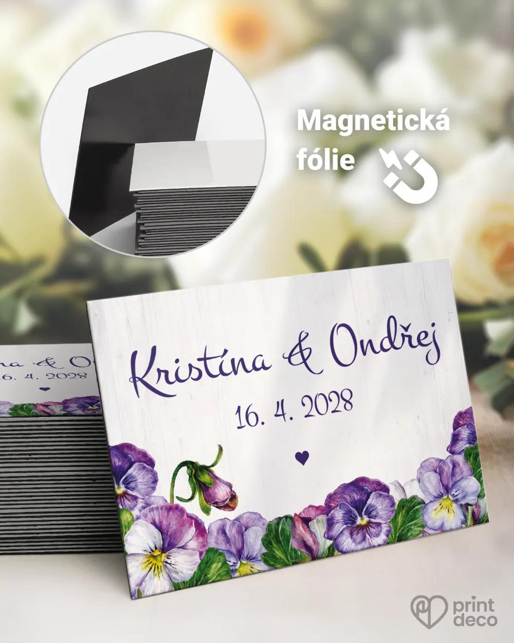 Kulaté svatební zrcátko s jemným motivem fialek v odstínech fialové a bílé okouzlí hosty romantickým stylem a decentní elegancí. Tento praktický dárek je krásným poděkováním za účast na vašem výjimečném dni a stylovou vzpomínkou. Personalizaci provedete snadno a zdarma v online editoru – doplníte jména, datum nebo vzkaz podle svého přání. Zrcátko se hodí k přírodním, vintage i romantickým svatbám a skvěle se kombinuje s dalšími svatebními tiskovinami – jmenovkami, etiketami či menu – ve stejném květinovém duchu.