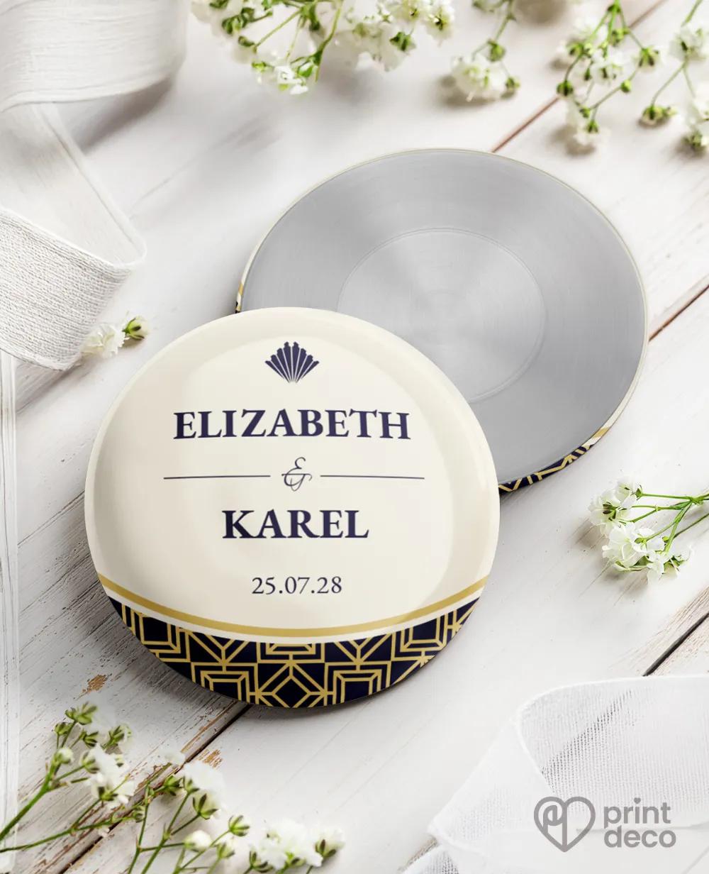 Svatební vnitřní vložka je elegantním detailem, který pozvedne vzhled každé obálky a zanechá působivý dojem už při jejím otevření. Geometrické vzory ve zlaté a tmavě modré barvě působí luxusně, noblesně a nadčasově, takže se skvěle hodí k vintage, elegantním i luxusně laděným svatbám. Tento art deco motiv spojuje stylový kontrast barev s precizní estetikou, čímž podtrhuje slavnostní charakter vaší svatby. Objednávka je jednoduchá – u varianty bez jmen stačí produkt vložit do košíku v požadovaném množství, u varianty se jmény stačí doplnit vaše údaje do políčka se zadáním pro grafika a o návrh se již postaráme. Vložku můžete snadno sladit s dalšími svatebními tiskovinami ve stejném art deco stylu, jako jsou oznámení, pozvánky či etikety, přičemž expresní výroba a vysokokvalitní tisk zaručí dokonalý výsledek.