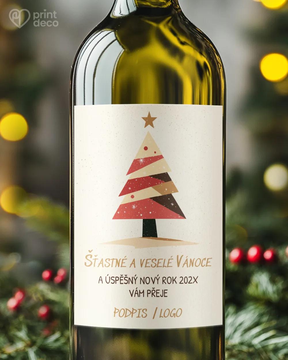 Mírně retro vánoční přání s geometrickým stromkem v teplých tónech působí útulně a elegantně. Ideální pro rodinu i firemní partnery. Úprava zdarma přes online editor.