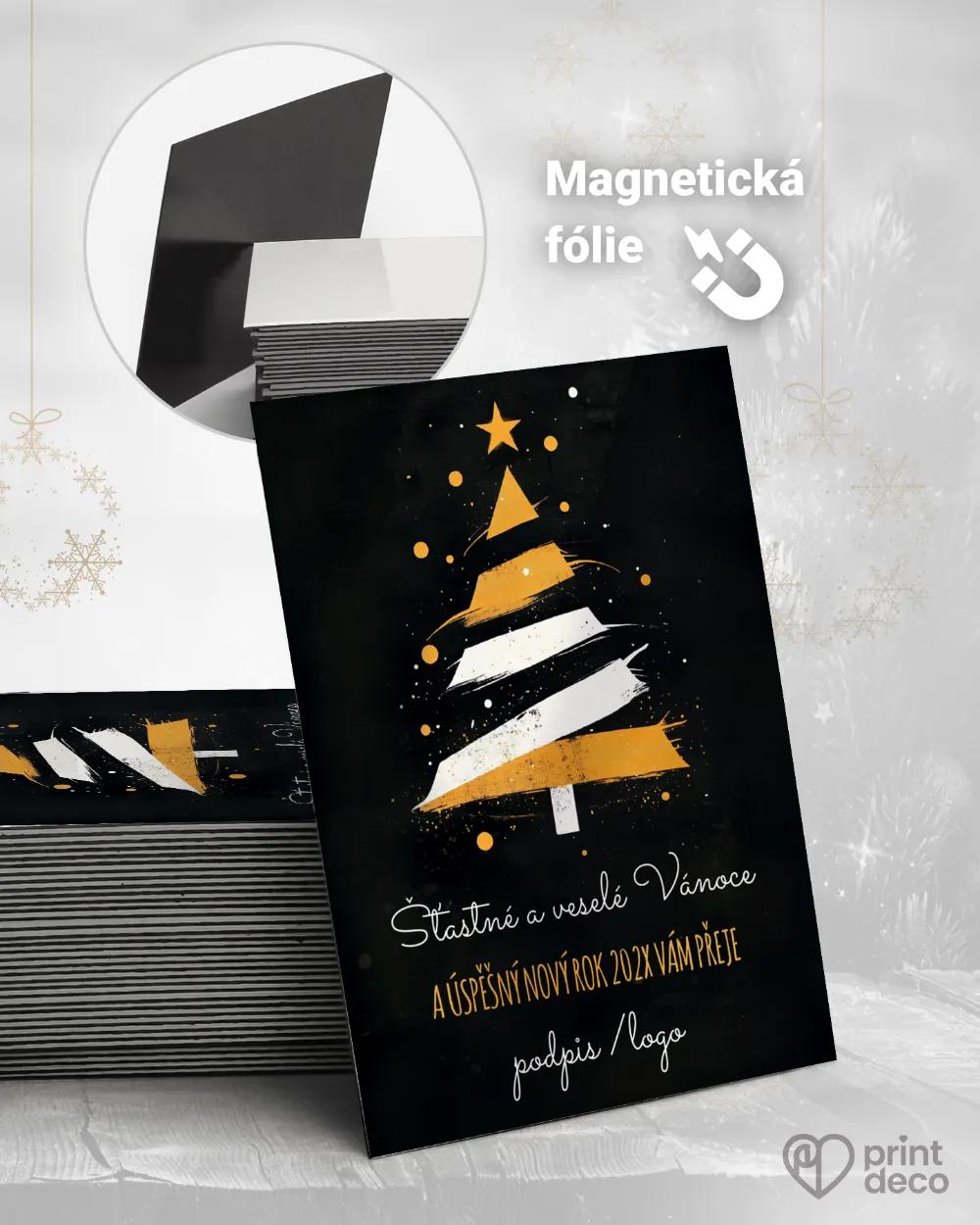 Oboustranné vánoční přání v černo-zlatém provedení s abstraktním stromkem působí luxusně a přitom decentně. Je ideální pro včelaře, kteří chtějí spojit svůj řemeslný charakter s elegantním svátečním designem, ale i pro firmy hledající moderní firemní PF. Text, logo nebo podpis lze jednoduše přidat díky úpravě zdarma přes online editor. Kvalitní tisk, expresní výroba a originální abstraktní motiv zaručují profesionální výsledek s elegantním svátečním dojmem.