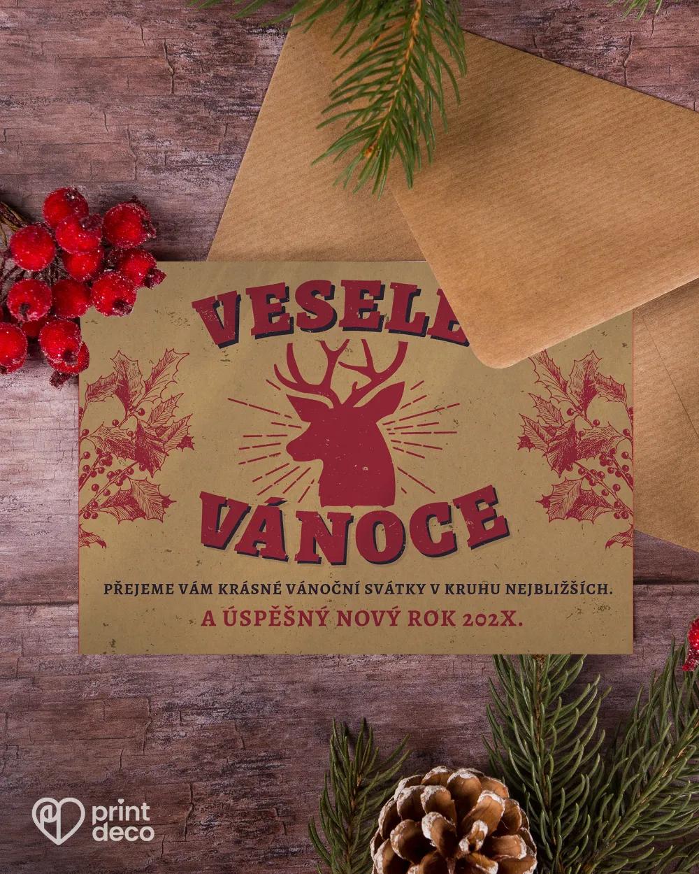 Rustikální vánoční magnetky s motivem jelena na kraftovém podkladu. Personalizace textu, loga či přání, úprava zdarma přes online editor. Praktický reklamní předmět.