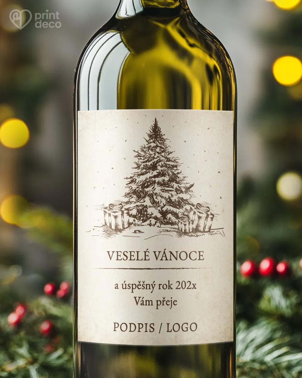 Veselé vánoční etikety na láhve s ručně kresleným stromkem ozdobeným barevnými koulemi a zlatou hvězdou působí hravě a optimisticky. Tento motiv je ideální pro rodinné podniky, kavárny, vinotéky či školy a školky při vánočních akcích, kde chtějí vnést radost a barevnost do sváteční atmosféry. Stejně tak se hodí i pro rodinné využití – ozdobí domácí láhve vína či pálenky připravené jako dárky pro blízké. Etikety si snadno přizpůsobíte, protože nabízejí úpravu zdarma přes online editor – doplníte název nápoje, ročník, obsah alkoholu, objem láhve, jméno výrobce či šarži. Vyrábějí se na kvalitní samolepicí papír s pevnou přilnavostí a spolehlivým tiskem, který zachová jasné barvy. Jsou vhodné na láhve o objemu 0,35–1 l a dostupná je také výroba na míru. Díky expresní výrobě máte etikety rychle připravené bez čekání.